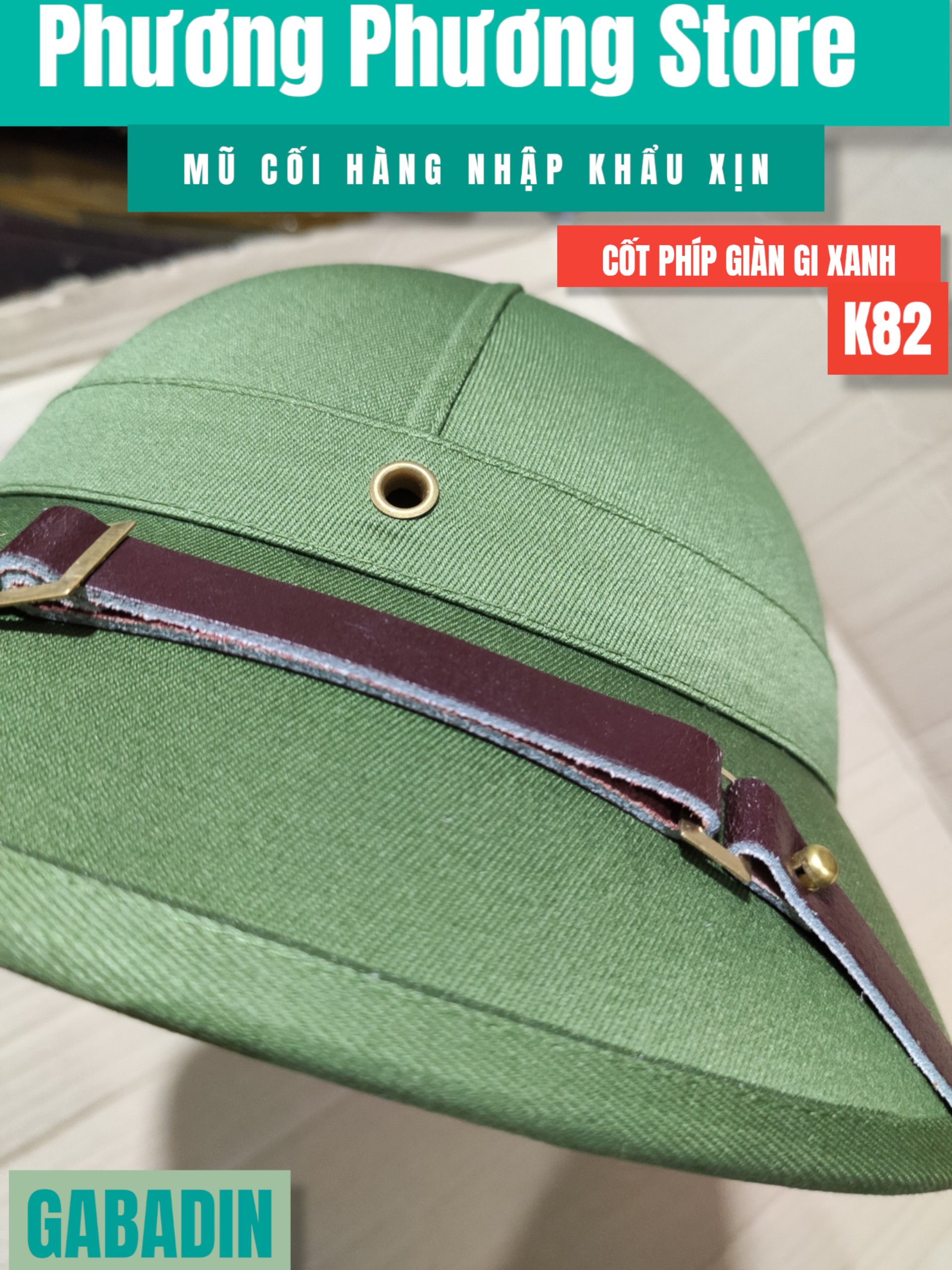 MŨ CỐI XỊN VẢI BỌC GABADIN QUAI DA THẬT LÒNG CỐT PHÍP GIÀN GI XANH CHỊU MƯA CHỊU NẮNG CHỊU VA ĐẬP SHOP PHƯƠNG PHƯƠNG STORE BÁN SẢN PHẨM MŨ CỐI XỊN HÀNG NHẬP KHẨU