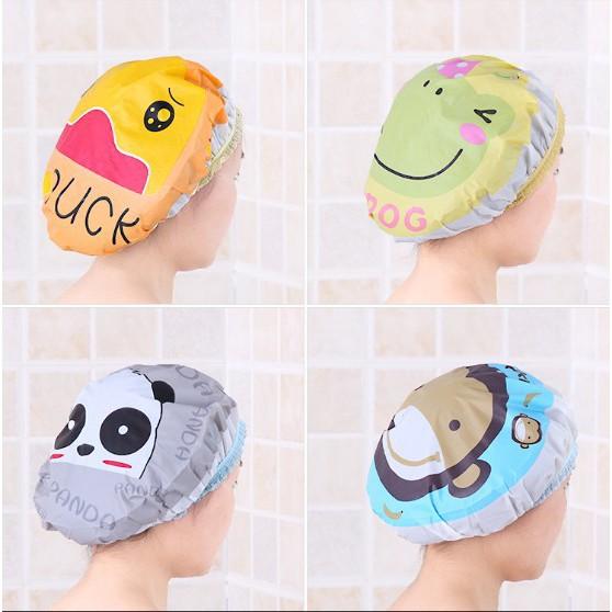 Màu sắc, mẫu mã kute đa dạng cứ đội là xinh nha Chất liệu nylon với terry mềm mại không thấm nước, phần dưới mũ có thun co giãn không làm ướt tóc khi tắm.