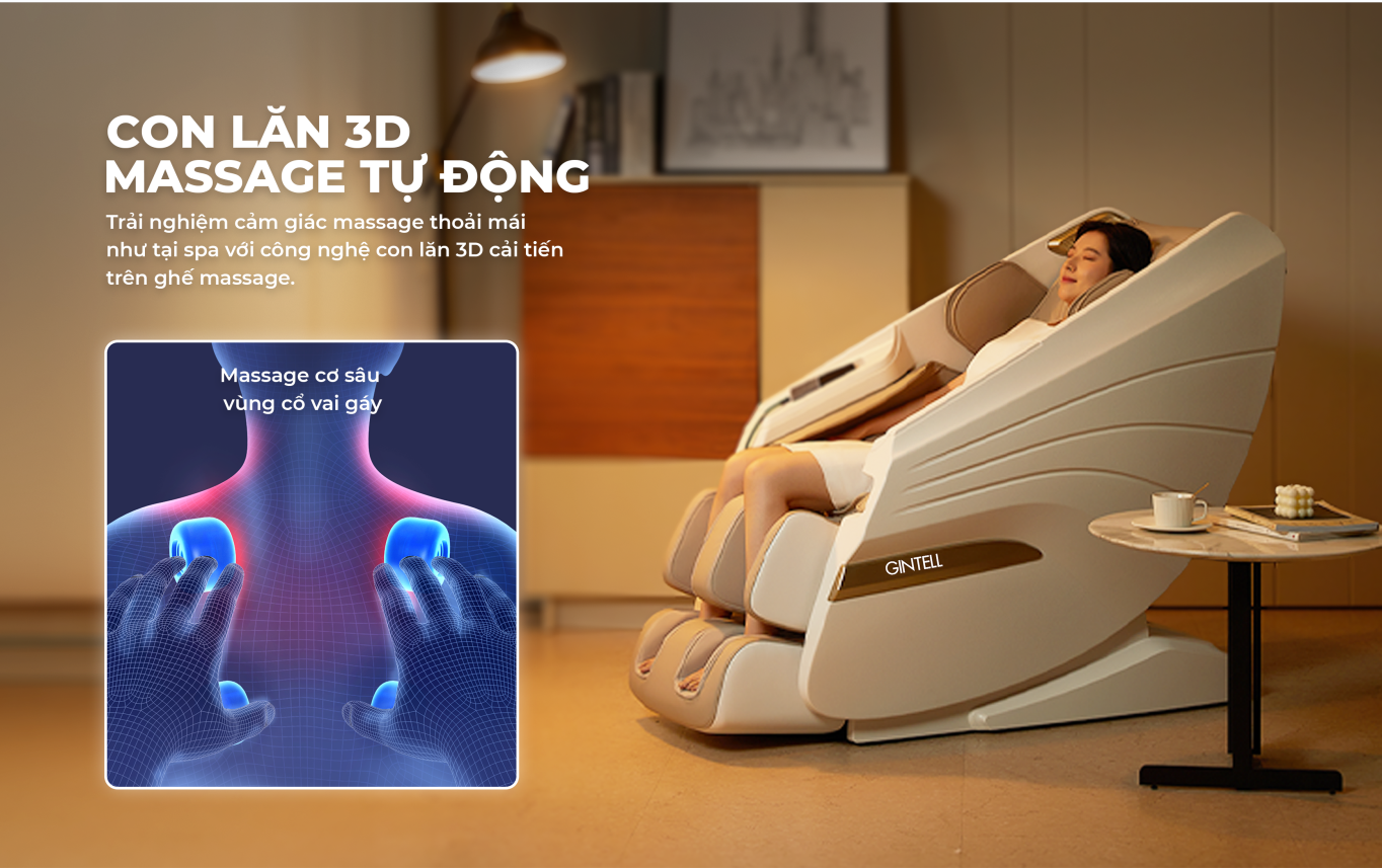 Với con lăn 3D cùng với các kỹ thuật massage chủ yếu như Shiatsu, nhào nặn, vỗ,…. giúp toàn bộ cơ thể của bạn được thư giãn một cách tối đa.