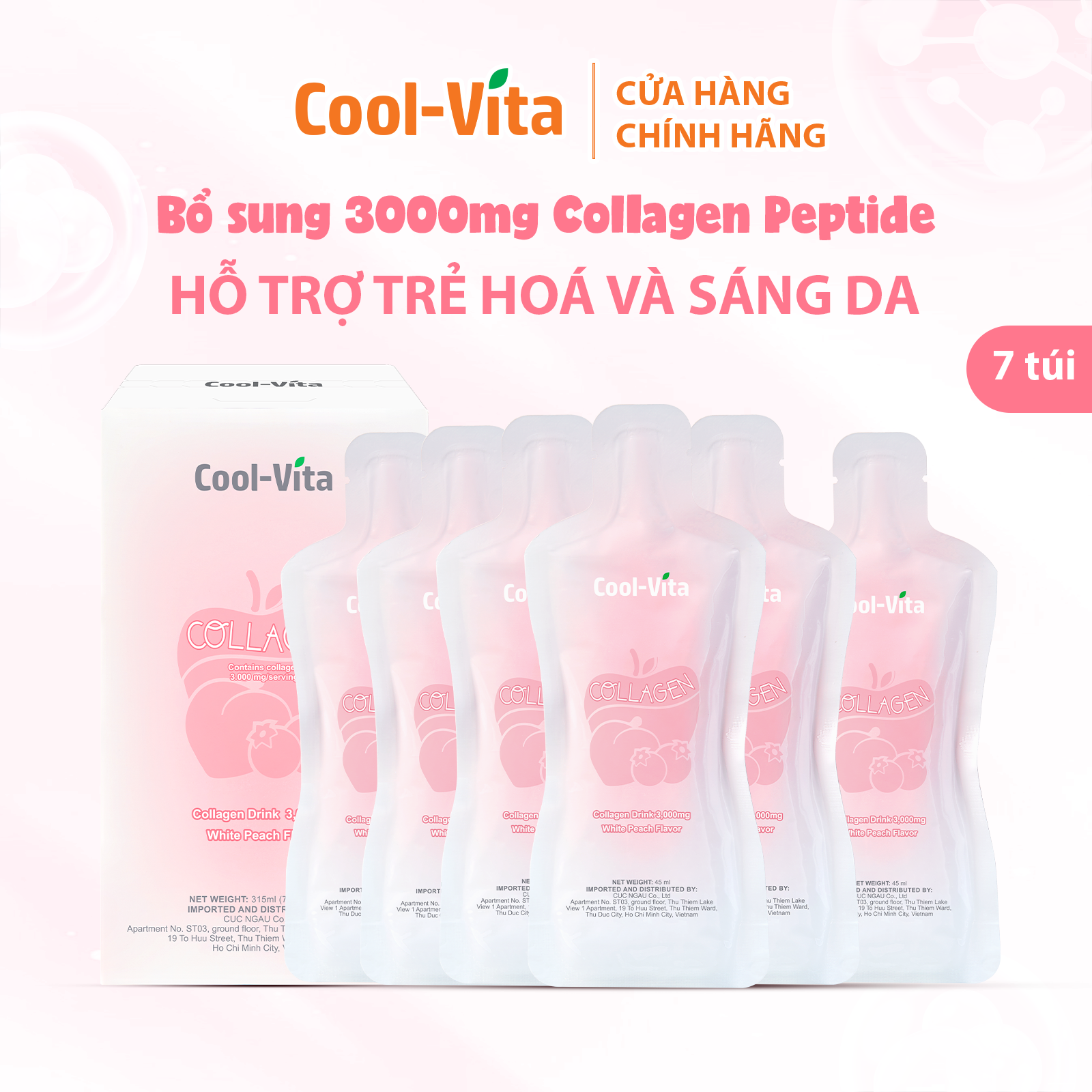 - Công dụng nổi bật của nước uống Collagen Cool-Vita: Đáp ứng nhu cầu bổ sung collagen hàng ngày.. Hỗ trợ duy trì độ đàn hồi cho da. Giúp hạn chế sự xuất hiện và hỗ trợ che giấu nếp nhăn. Hỗ trợ dưỡng tóc và móng chắc khỏe hơn.