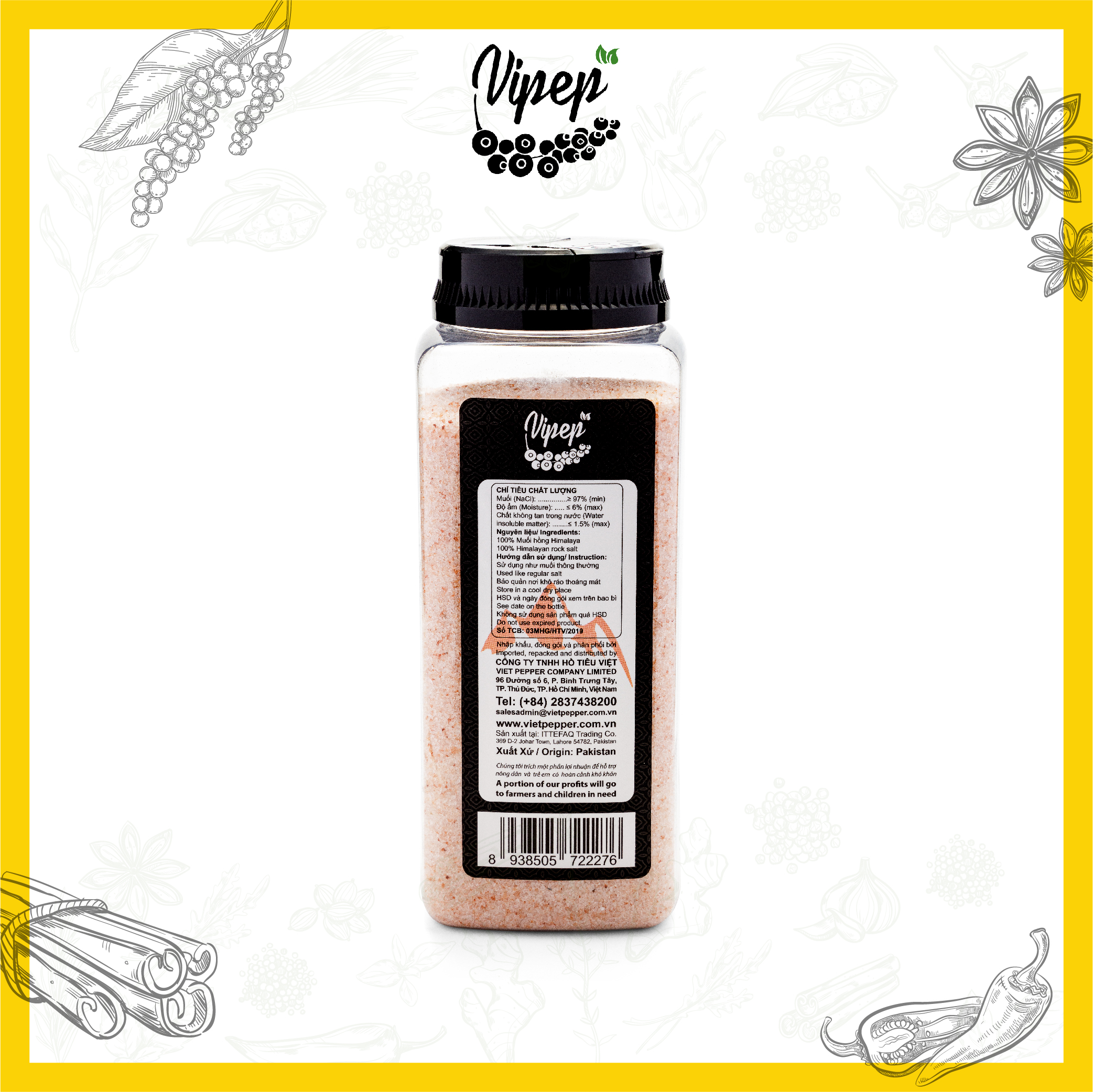 ✨Muối Hồng Himalaya Xay Nhuyễn Vipep Hũ Nhựa 1.1kg - Gia vị Vipep