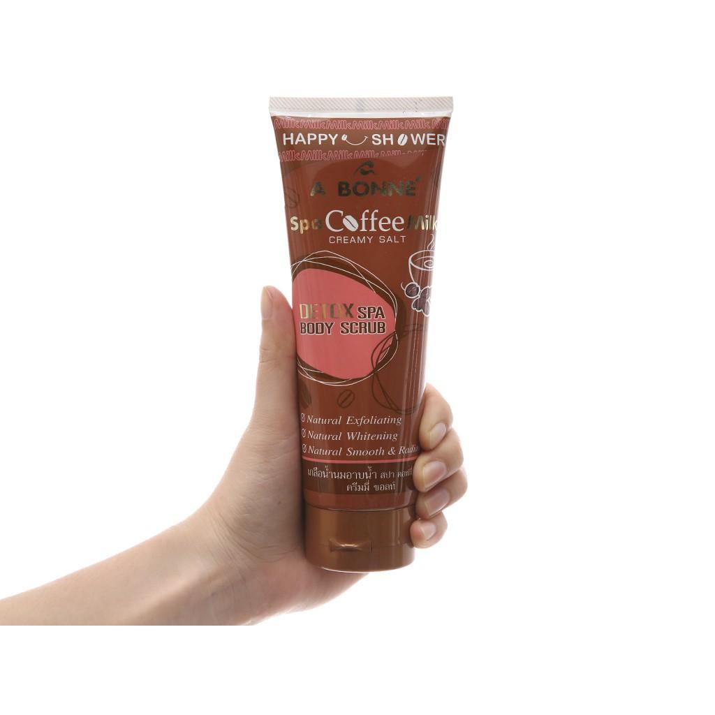 - Muối Tắm A Bonne' Spa Coffee Milk 350g với tinh chất cà phê, thành phần "detox" cho da sẽ loại bỏ các chất độc hại, cải thiện tuần hoàn máu, làm săn chắc da và cung cấp thêm độ ẩm. Bên cạnh đó sản phẩm được thêm vào 1 ít mùi hương Bạc Hà giúp tâm trạng của bạn thư thái hơn. Công dụng: