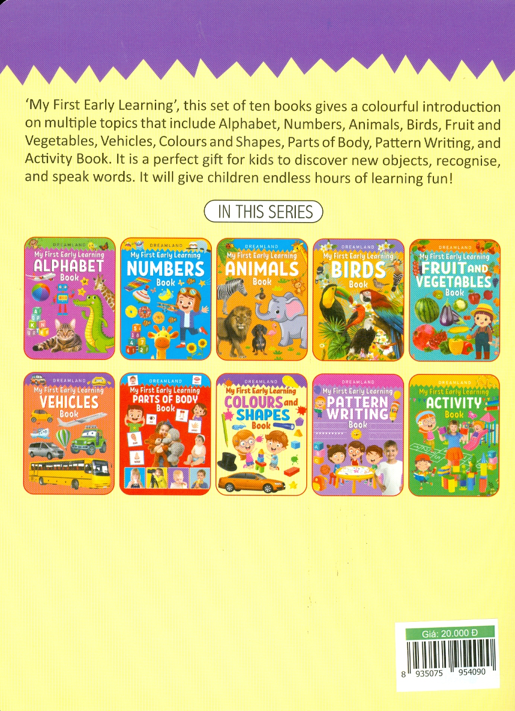 Mua tại Tiktok'My First Early Learning' gồm 10 cuốn sách:- Bảng chữ cái, Số, Động vật, Chim, Trái cây và Rau củ, Màu sắc và Hình dạng, Các bộ phận của Cơ thể, Viết theo Mẫu và Hoạt động. Bộ sách vui nhộn và mang tính giáo dục với những hình ảnh dễ thương sống động này là sự lựa chọn tốt nhất cho trẻ em.