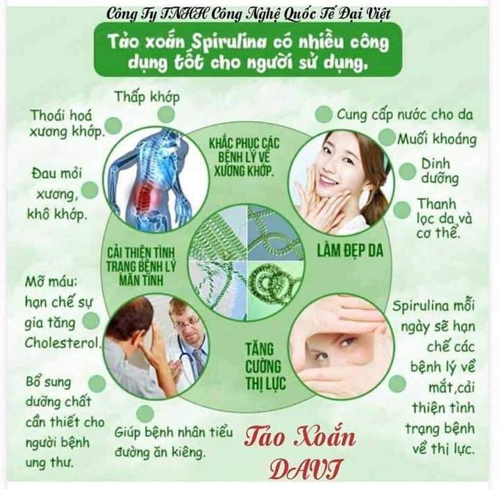 Tảo xoắn Đại Việt Davi Angel Tảo bột giúp cân bằng dinh dưỡng, bổ sung chất xơ tự nhiên, làm đẹp da và tóc DV15/DV16 CAM KẾT MUA HÀNG TẠI TẢO XOẮN ĐẠI VIỆT DAVI