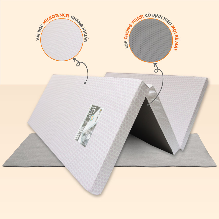 - Đệm có thiết kế gấp 3 tiện dụng, phù hợp với các không gian nhà hay phòng chật hẹp hiện nay giúp thoải mái cất giữ khi không sử dụng và di chuyển dễ