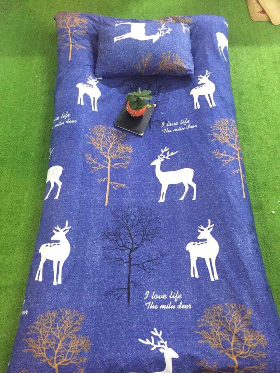 - Được đổi trả miễn phí nếu sản phẩm không như mình quảng cáo Link sản phẩm này bao gồm Nệm bông xuất Nhật quy cách: Họa Tiết, Xanh, Tấm bọc nệm nệm dài 2m - ngang 1m2( khổ 1 người nằm),nệm dày 6-7cm, nặng 4.2kg, màu xám nệm dài 2m - ngang 1m4( khổ 2 người nằm),nệm dày 6-7cm, nặng 4,8kg, màu xám nệm dài 2m - ngang 1m6( khổ 2 người nằm),nệm dày 6-7cm, nặng 5,5kg, màu xám nệm dài 2m - ngang 1m8( khổ 2 người nằm),nệm dày 6-7cm, nặng 6,5kg, màu xám Nệm được dàn bông gòn rất đều ( không có chỗ ít bông chỗ nhiều bông), đường may chắc chắn, may bo viền bền đẹp. Nệm có thể trải nằm trưc tiếp dưới đất hoặc trải trên giường, phản tùy thích. Mẫu 1 Màu Xanh: Mẫu 2 Họa Tiết: Áo Bọc Nệm Hình Con Nai Xanh 2m x 1m4 , 1m x 1m8: