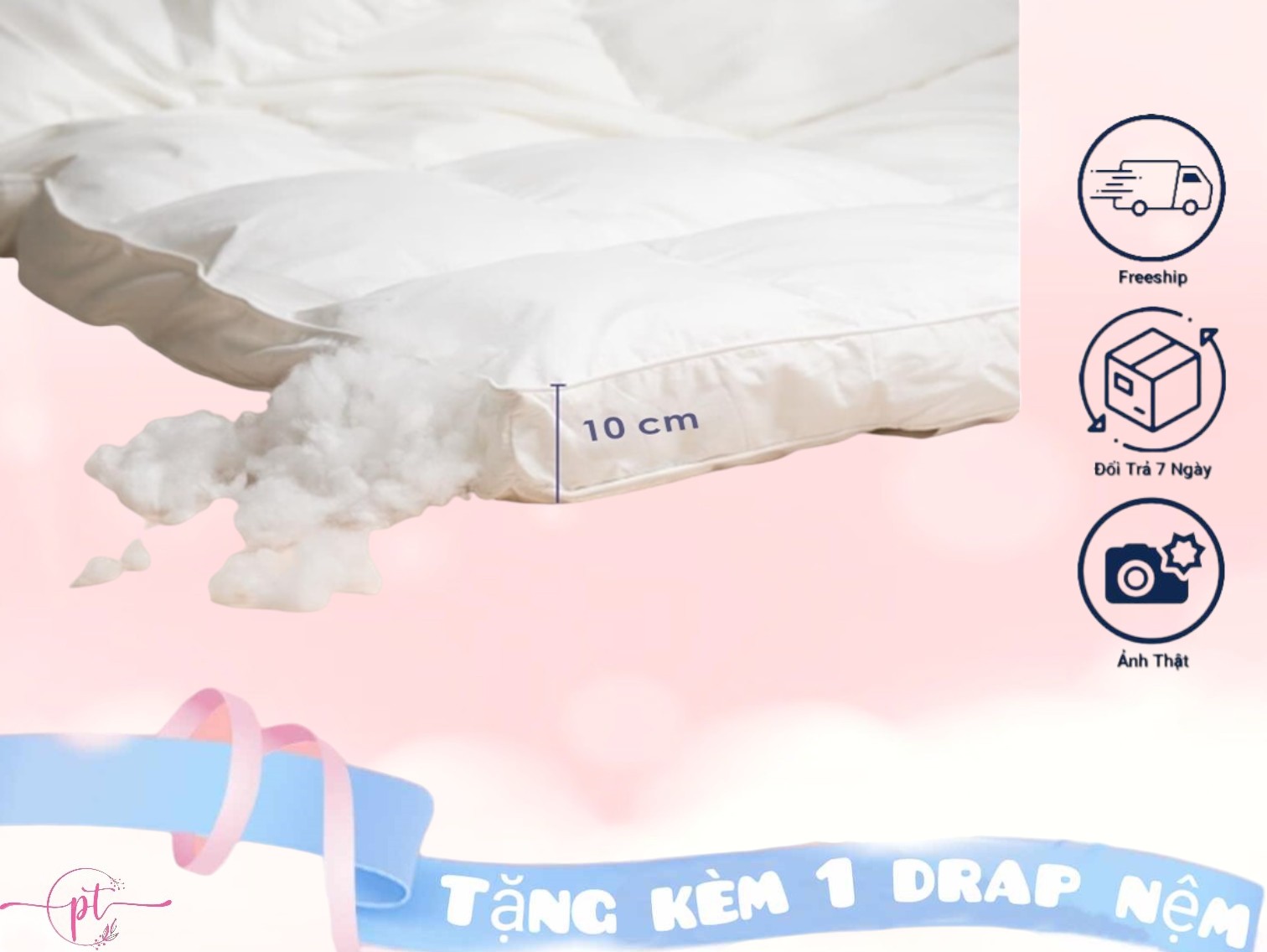 Shop cam kết: - Mặt vải topper là cotton 100% HOẶC cotton đũi. - Ruột là bông nguyên tấm, vệ sinh giặt thoái mai, không xô, không nát, không xẹp.   Bạn luôn mơ ước