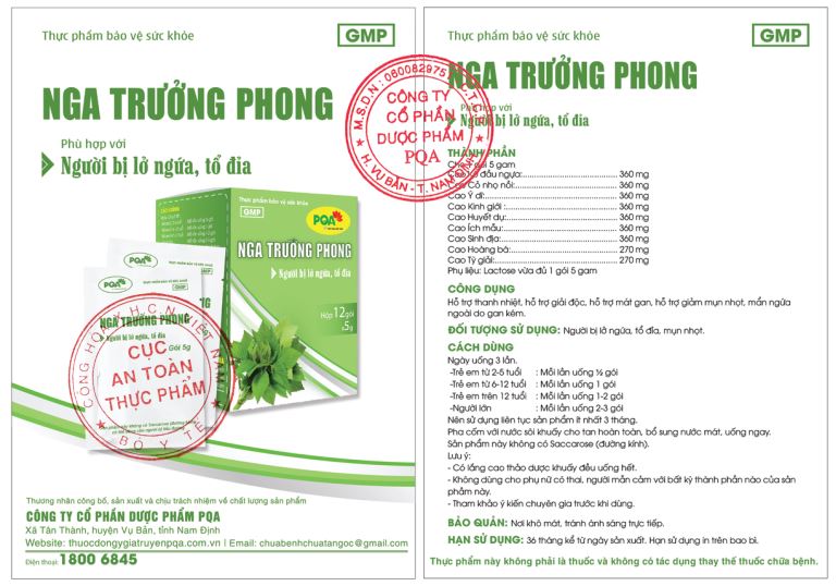 Nga Trưởng Phong PQA Hỗ Trợ Thanh Nhiệt Giải Độc, Giảm Mụn Nhọt Và Mẩn Ngứa Ngoài Da Hộp 12 Gói THÔNG TIN SẢN PHẨM: