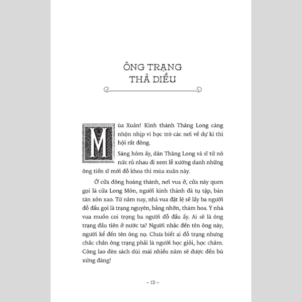 Ông trạng thả diều, tập truyện ngắn thú vị kể về các danh nhân lịch sử đời Trần. Đó là chuyện về Nguyễn Hiền, vị trạng nguyên trẻ tuổi nhất Việt Nam, đỗ trạng nguyên khi mới mười ba tuổi. Là huyền thoại về người thày đức độ Chu Văn An. Chuyện về cậu học trò có ngoại hình không đẹp nhưng thông minh kiệt xuất Mạc Đĩnh Chi. Và chuyện về đôi bạn chiến đấu anh hùng Yết Kiêu – Dã Tượng…