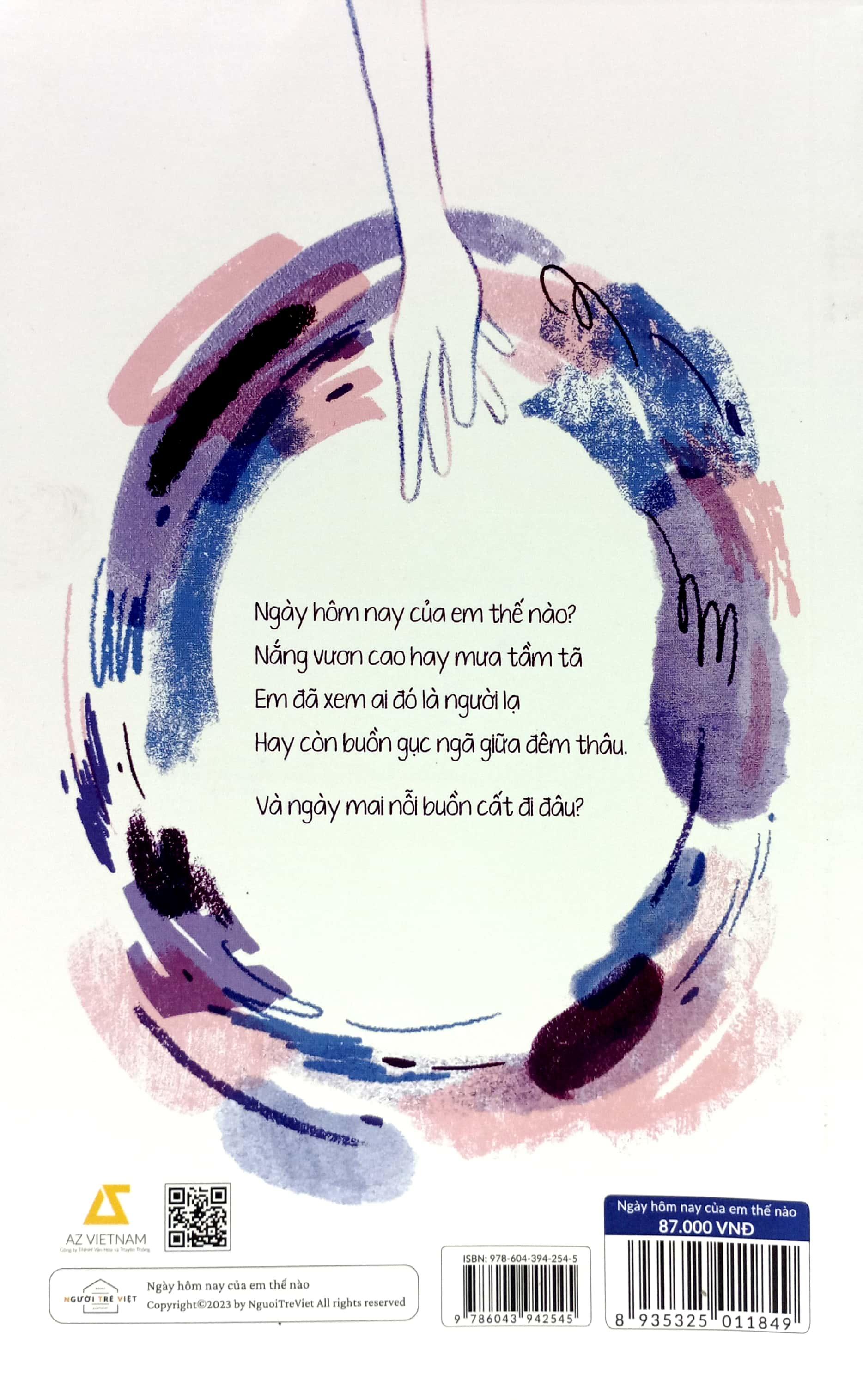 “Ngày hôm nay của em thế nào?” sẽ đưa độc giả trở về những cảm xúc miên man ấy. Bằng giọng điệu gần gũi, ngọt ngào đôi khi da diết và bồi hồi, bạn sẽ bắt gặp bức tranh mà chính m.ình là nhân vật chính trong đó. Có tình yêu tràn đầy sắc màu hạnh phúc, những cung bậc tươi sáng ẩn sâu trong tình yêu đôi lứa; có những nốt nhạc trầm buồn, những gam màu quá khứ mà tình ái để lại; có những trải lòng về bao khó khăn trong cuộc sống; có gia đình với kỷ niệm ấu thơ, những câu nói yêu thương chưa trọn vẹn… Khi gấp lại cuốn sách này, hy vọng ngày hôm nay của bạn sẽ tràn ngập hạnh phúc nhiều hơn phần khổ đau, sẽ thôi nhớ nhung về những chuyện đã cũ và buông nặng nhọc, chẳng để m.ình bị đau.