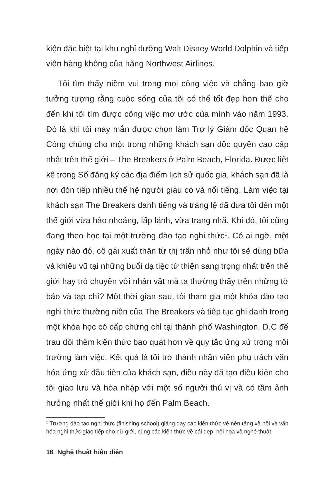 Câu trả lời nằm trong “Nghệ thuật hiện diện” - một cuốn sách được viết bởi nhà sáng lập trường đào tạo kỹ năng Palm Beach Jacqueline Whitmore - người chuyên cung cấp các chương trình đào tạo về ứng xử dành cho các doanh nghiệp lớn trên thế giới.