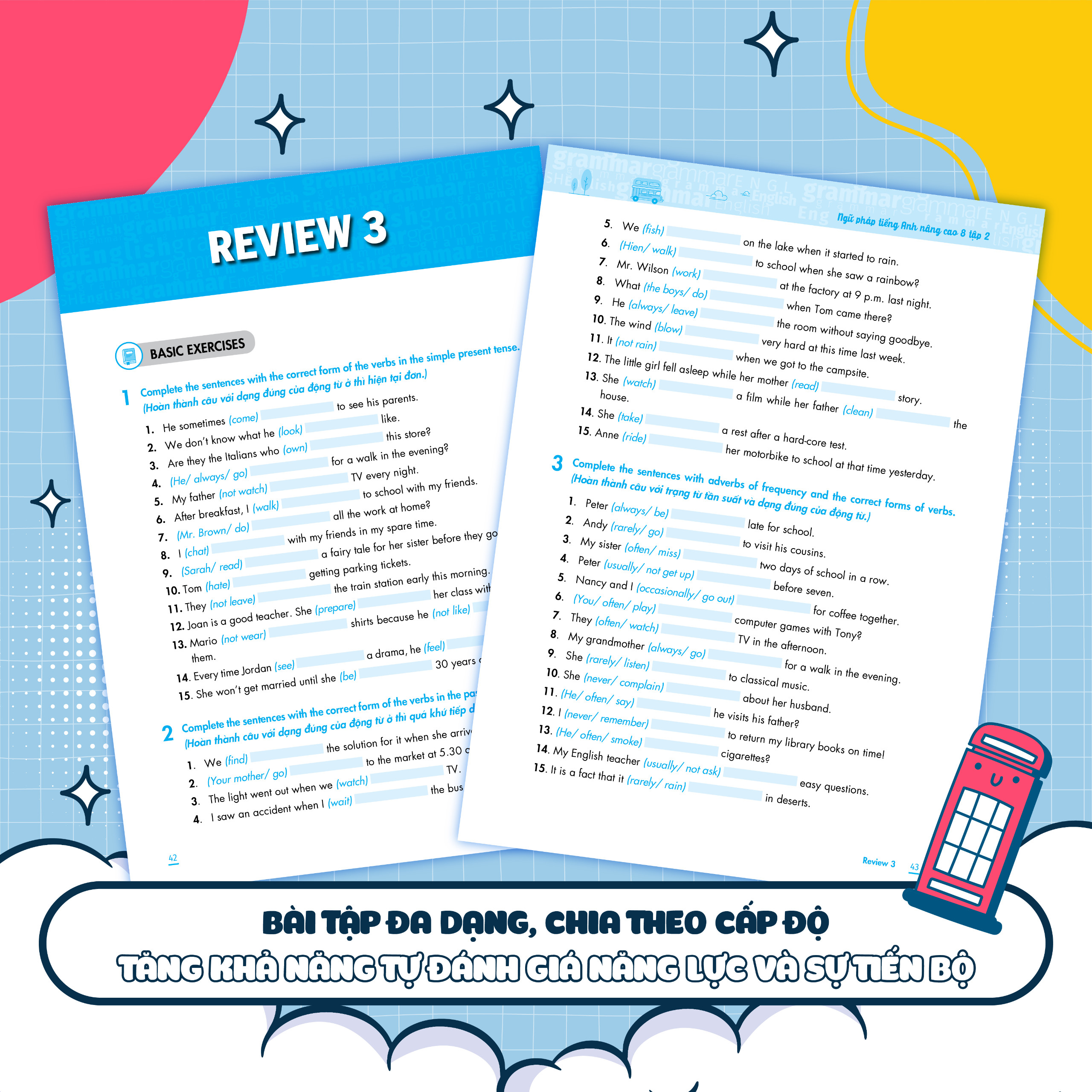 Bài tập đa dạng và chia cấp độ: Tăng cường khả năng tự đánh giá và rèn luyện từng kỹ năng một cách có hệ thống.