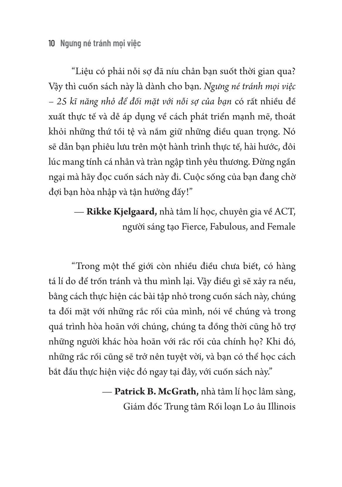 Ngưng né tránh mọi việc - 25 kĩ năng nhỏ để đối mặt với nỗi sợ của bạn sẽ tạo ra sự khác biệt nếu độc giả làm theo những kĩ năng nhỏ được giới thiệu trong cuốn sách này.