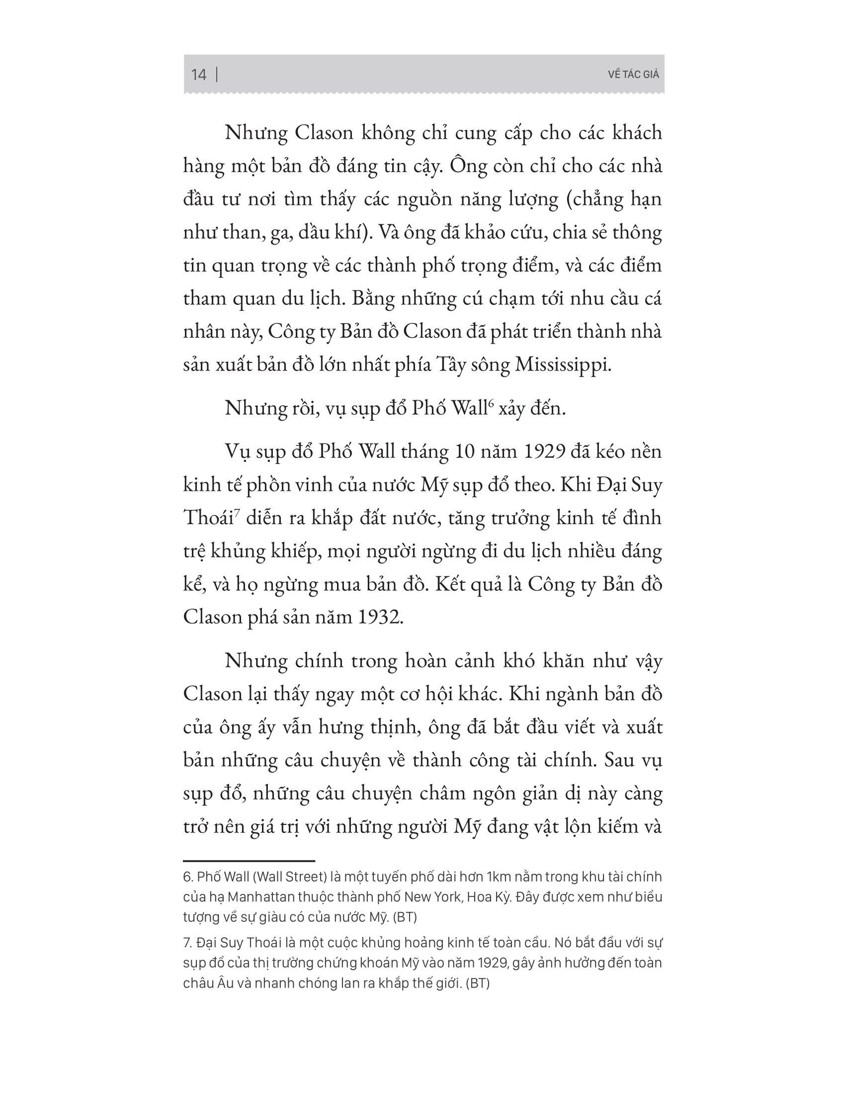 Cuốn sách cung cấp cho những người đang khao khát thành công tài chính một nhận thức sâu sắc để giúp họ “kiếm tiền, sinh tiền”, giữ gìn được tiền bạc và khiến chúng sinh sôi nảy nở thêm từ số tiền dôi dư thông qua 7 chương sách