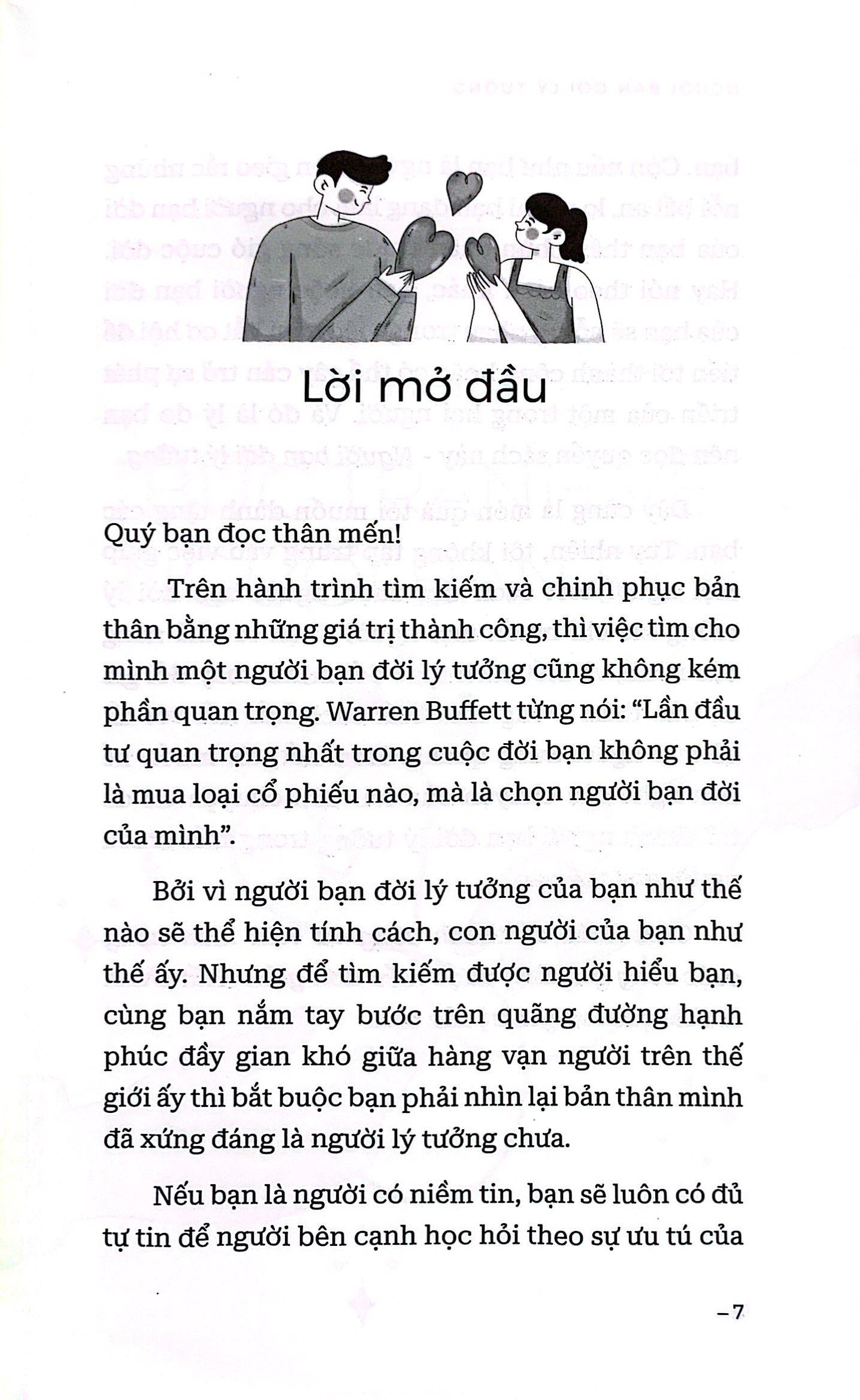 Bất kể bạn là nam hay nữ, đã kết hôn hay chưa kết hôn thì Người Bạn Đời Lý Tưởng cũng là cuốn sách bạn nên đọc ít nhất một lần. Bởi bạn sẽ biết cách làm thế nào để tìm kiếm được người bạn đời lý tưởng nhất, phù hợp nhất cho riêng m.ình nếu bạn chưa lập gia đình, và làm thế nào để người bạn đời của m.ình trở nên lý tưởng nếu bạn đã lập gia đình.