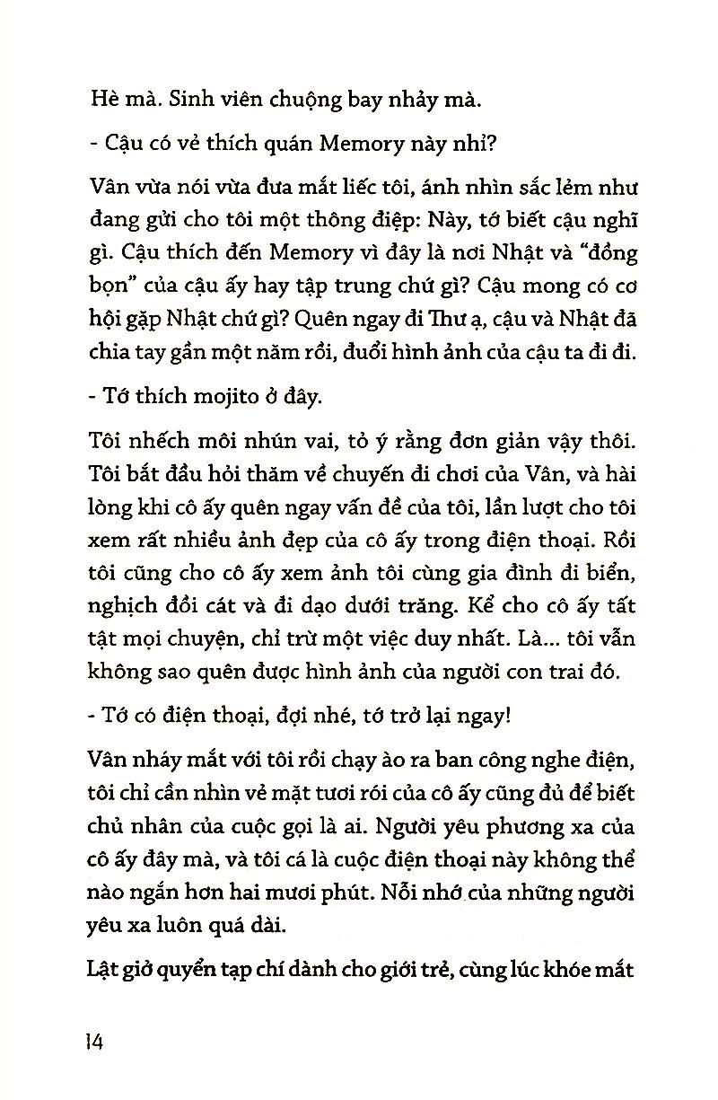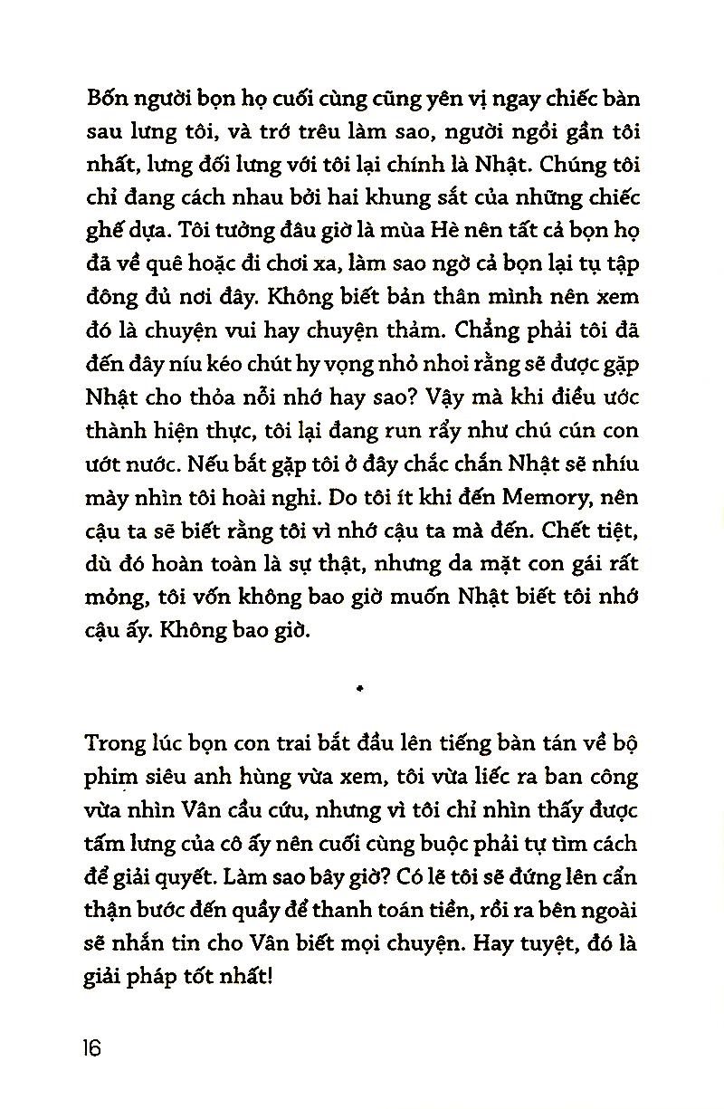 Quán trà Ký Ức là một quán nước nhỏ được dựng bằng gỗ, tọa lạc ở lưng chừng chặng đường của cuộc viễn du. Quán trà kỳ lạ này chỉ bắt đầu mở cửa hoạt động vào lúc trời tắt nắng, và duy nhất một cô gái trẻ có gương mặt khả ái với mái tóc màu khói tết thành bím dài thả sang một bên, là chủ nhân đồng thời là người phục vụ, đợi bạn dừng chân ghé vào ngơi nghỉ, sẽ thong thả vừa pha chế vừa kể cho bạn nghe vài câu chuyện tình nơi đó chốn đây.