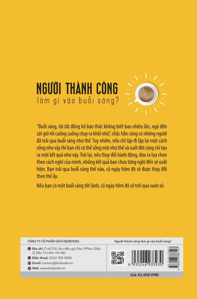 Nếu bạn tò mò về thói quen buổi sáng của những người thành công hay muốn thay đổi chính mình trở thành phiên bản tốt nhất hãy đọc ngay cuốn sách “Người Thành Công Làm Gì Vào Buổi Sáng?”. Bạn sẽ có những buổi sáng tiếp theo trong cuộc đời thật diệu kỳ, đầy năng lượng và tràn đầy hứng khởi cho những mục tiêu to và nhỏ.
