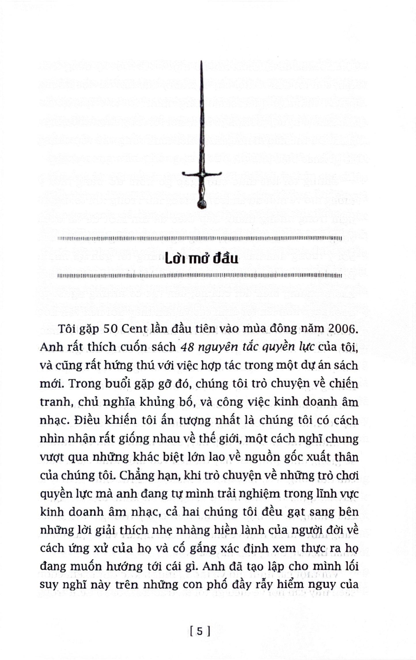Sợ hãi là một trong những cảm xúc nguyên thủy nhất mà mỗi người cảm nhận được ngay từ lúc chào đời. Không ai thoát khỏi quy luật chung này. Vì vậy, vượt qua sợ hãi, với tất cả hình thức cung bậc đa dạng của nó, không phải là điều tự nhiên đến mà là kết quả của một quá trình nỗ lực kiên trì, có ý thức, có phương pháp. Robert Greene đã trình bày trong cuốn sách của m.ình, thông qua 10 chương sách, 10 chiến lược hành động khác nhau để vượt qua những khía cạnh khác nhau của cảm giác sợ hãi. Những gì được viết ra trong cuốn sách không phải là điều gì mới lạ do tác giả phát minh ra, mà đơn thuần chỉ là sự tổng kết có hệ thống những phương cách mà nhiều nhân vật nổi tiếng trong lịch sử thuộc mọi lĩnh vực - từ chính trị, quân sự đến kinh doanh, từ thể thao đỉnh cao đến nghiên cứu khoa học – đã áp dụng thành công để vượt qua nỗi sợ hãi của chính họ nhằm tiến tới thành công. Bên cạnh những khuôn mặt nổi tiếng trong lịch sử, Greene dẫn dắt bạn đọc theo con đường vươn lên của ca sĩ nổi tiếng 50 Cent từ một đứa trẻ lang thang bán túy trên đường phố trở thành ông chủ đầy quyền lực của một đế chế kinh doanh phát đạt, cũng như cách mà anh vượt qua những thử thách mới, những nỗi sợ hãi mới gặp phải trong mỗi giai đoạn của cuộc sống.