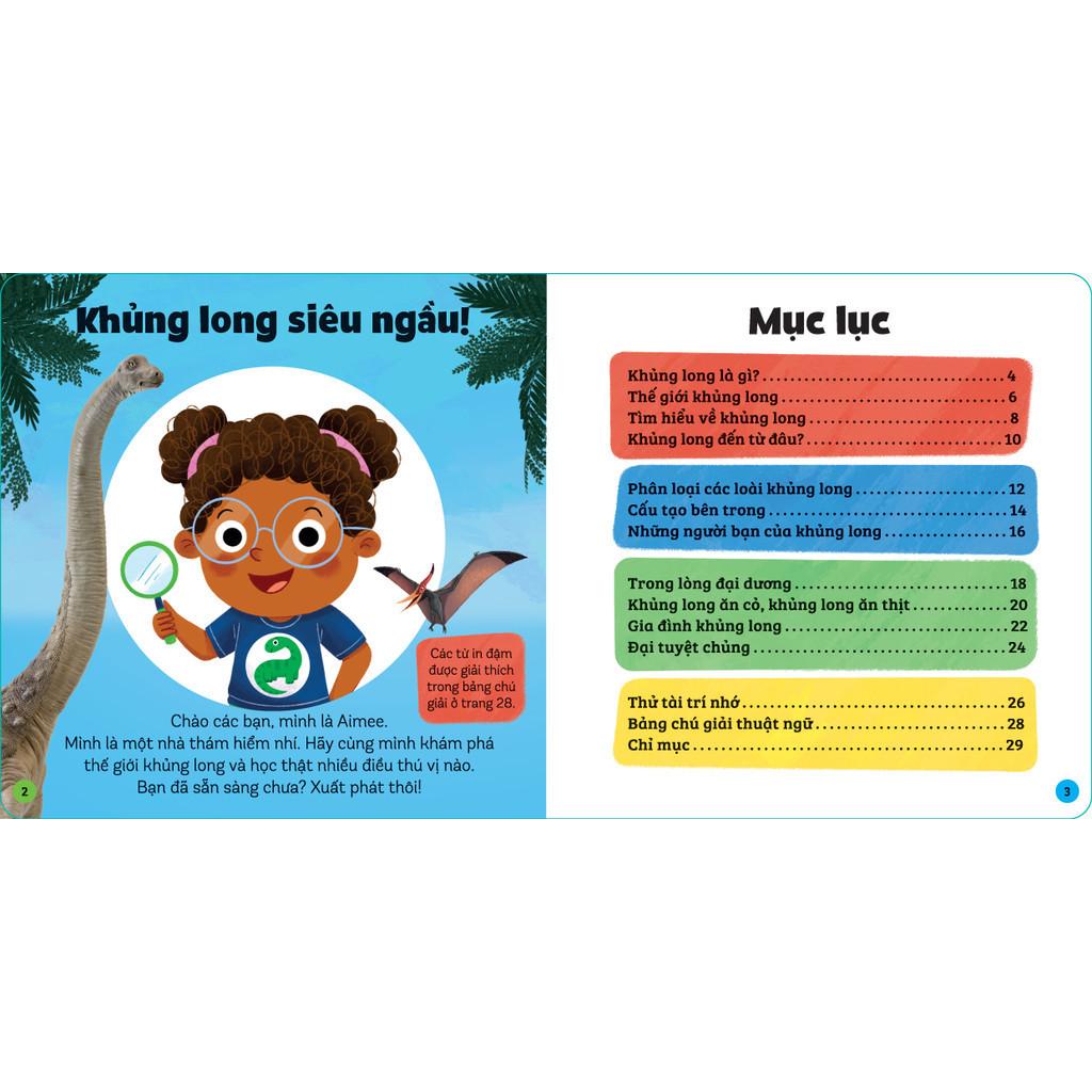 Đối với các độc giả nhí vẫn luôn tò mò về thế giới đầy bí ẩn của những chú khủng long, cuốn sách thú vị này sẽ không làm các bé thất vọng. Cuốn sách giới thiệu mọi thứ từ khủng long sống trong giai đoạn nào, chúng trông như thế nào, chúng ăn gì đến vì sao khủng long lại tuyệt chủng. Phụ huynh hãy cùng bé mở sách và giải đáp những thắc mắc của con trẻ nào!