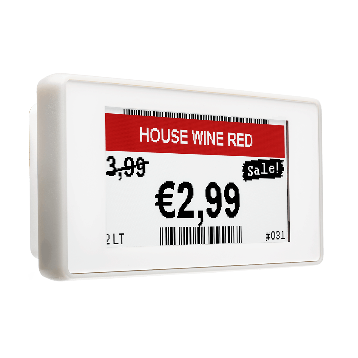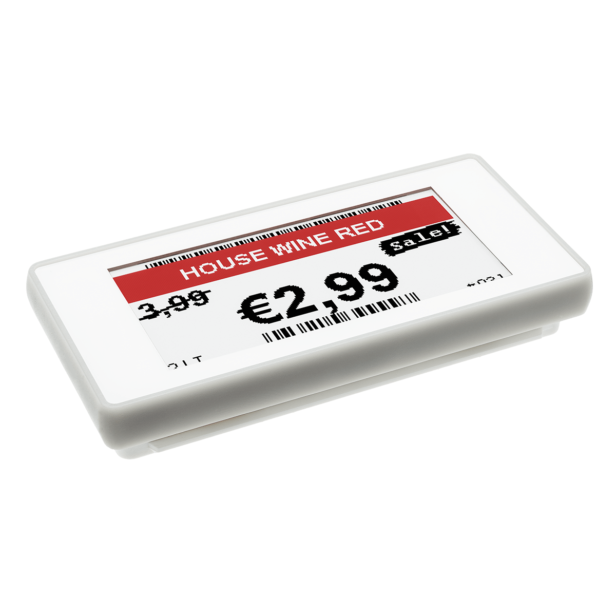 Giải pháp nhãn giá điện tử của chúng tôi cho phép các cửa hàng, siêu thị thay đổi giá sản phẩm theo thời gian thực và thực hiện các chiến dịch khuyến mãi tại bất kì thời gian hoặc địa điểm theo mong muốn. EE-213R giúp loại bỏ phương pháp dán nhãn truyền thống, tiết kiệm nhân công và các chi phí phát sinh khác khi thay đổi giá cả và thông tin của sản phẩm. MÔ TẢ SẢN PHẨM Nhãn giá điện tử EE-213R có kích thước 2.1” , màn hình hiển thị với các màu đen / trắng / đỏ. Nhãn điện tử ( ESL ) EE-213R đặc biệt phù hợp cho các của hàng bán lẻ, siêu thị, chuỗi nhà thuốc… Nhờ độ tương phản cao của màn hình hiển thị, mã vạch trên màn hình EE-213R có thể đọc được bằng cách sử dụng máy quét mã vạch thông thường. Vì màn hình chỉ tiêu thụ năng lượng trong quá trình truyền sóng vô tuyến và cập nhật màn hình, Opticon có thể đảm bảo tuổi thọ pin lên đến 5 năm ở nhiệt độ phòng với 1 lần cập nhật mỗi ngày.   Bằng cách sử dụng phần mềm Opticon ESL Server , việc cập nhật hoặc thay đổi nội dung trên EE-213R được thực hiện dễ dàng. Bạn có thể sử dụng thiết bị quét mã vạch của Opticon và quét mã vạch trên nhãn ESL, cập nhật thông tin trên thiết bị quét. Thông tin trên nhãn điện tử sẽ được cập nhật nhanh chóng theo thời gian thực.   THÔNG SỐ KỸ THUẬT
