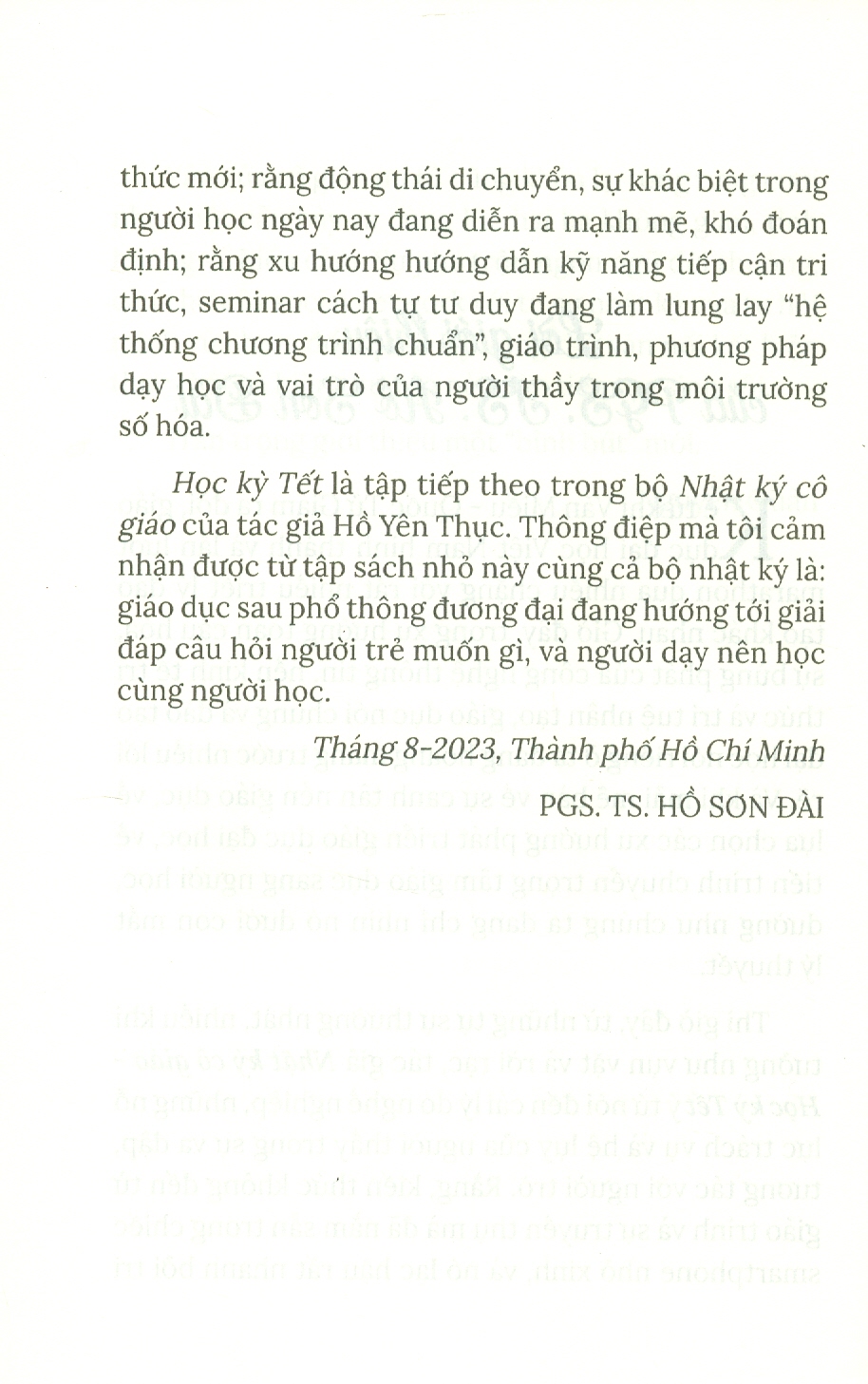 NHẬT KÝ CÔ GIÁO - HỌC KỲ TẾT Tác giả: Hồ Yên Thục ISBN: 9786044831466 Xuất bản: 3/2024 Trọng lượng: 250 gr NXB: Tổng Hợp TP.HCM Số trang: 186 trang - khổ: 19 x 13 cm Từ những