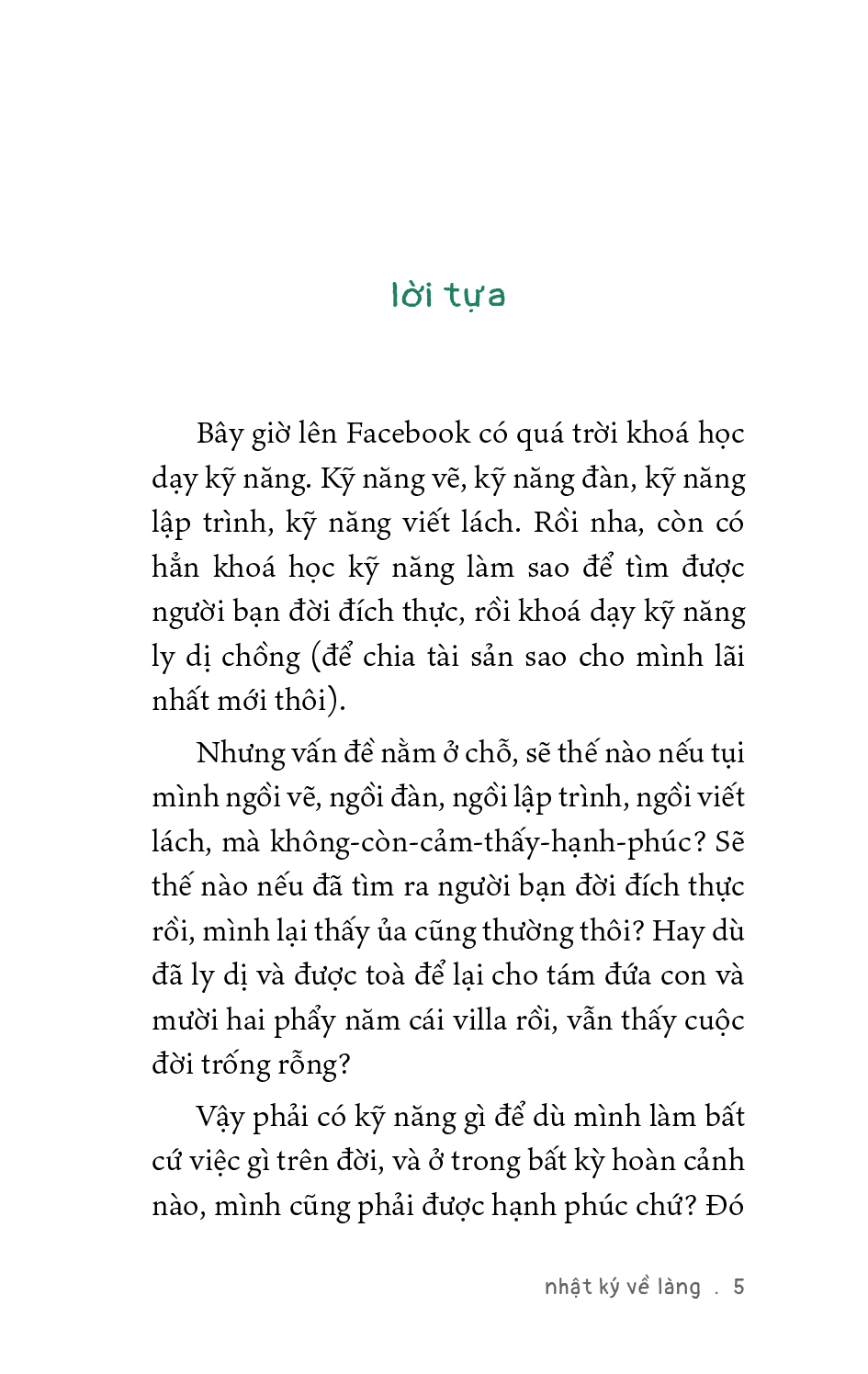 Vậy phải có kỹ năng gì để dù mình làm bất cứ việc gì trên đời, và ở trong bất kỳ hoàn cảnh nào, mình cũng phải được hạnh phúc chứ? Đó thực sự là kỹ năng tối quan trọng trên tất thảy, và cần thiết cho cả đời người. Bởi vì chẳng ai trong tụi mình, muốn sống một cuộc đời mà không hạnh phúc.