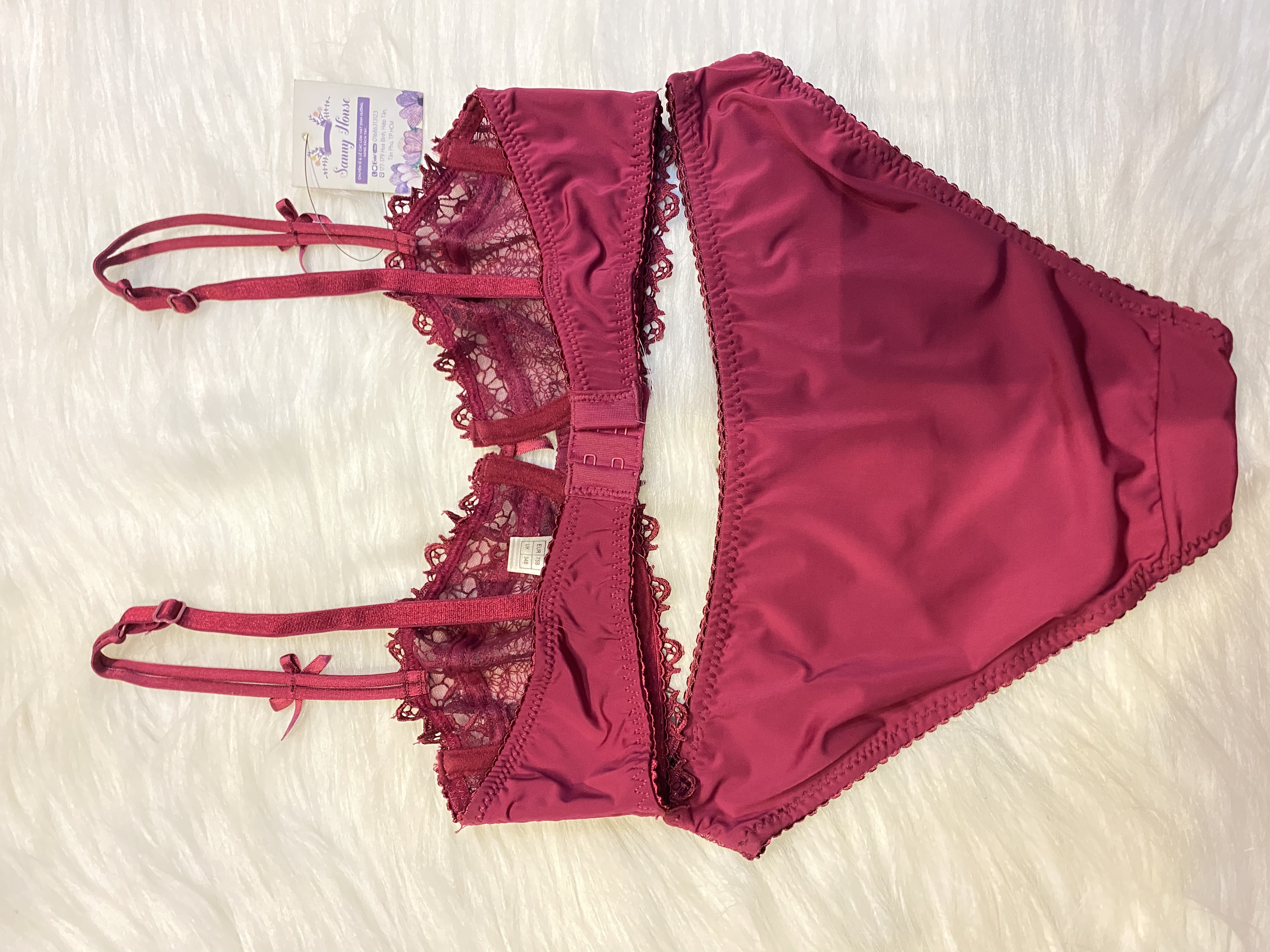 Màu sắc: Đỏ đô Chất liệu: Ren mềm BRA: Fresize và có tăng đơ điều chỉnh độ rộng, móc gài sau lưng QUẦN Chữ Y/Đùi: - S: V3 dưới 80cm - M: V3 từ 80-95cm