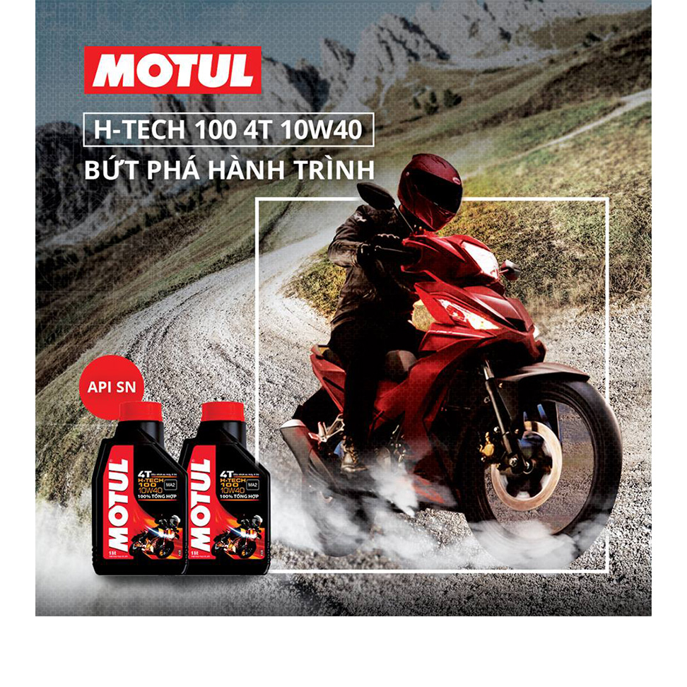 - Nhớt Xe Số Motul H-Tech 100 4t 10w40 12x1l Vn sử dụng cho các loại động cơ xe 4 thì đời mới, công suất mạnh như xe côn tay… của các hãng Honda, Yamaha… yêu cầu độ nhớt phù hợp.