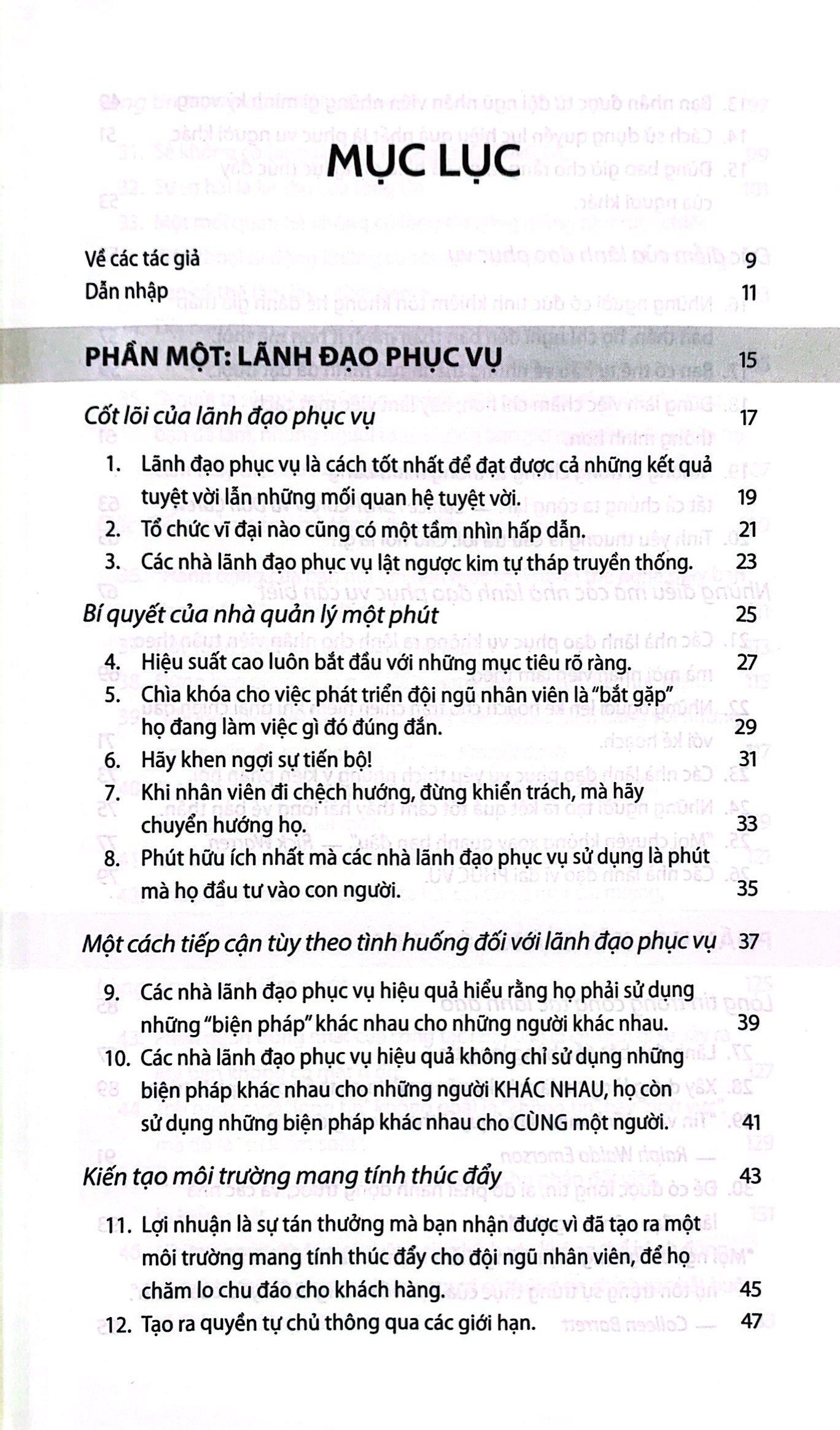 Chứa đựng những hiểu biết sâu sắc, đáng nhớ và đôi khi ngược đời về lãnh đạo, cuốn sách này là một tài liệu tổng hợp gồm hai phần về những niềm tin không thể lay chuyển của Blanchard và Conley về lãnh đạo phục vụ và xây dựng lòng tin – hai lĩnh vực chuyên môn tương ứng của họ. Bạc đọc sẽ được khám phá: