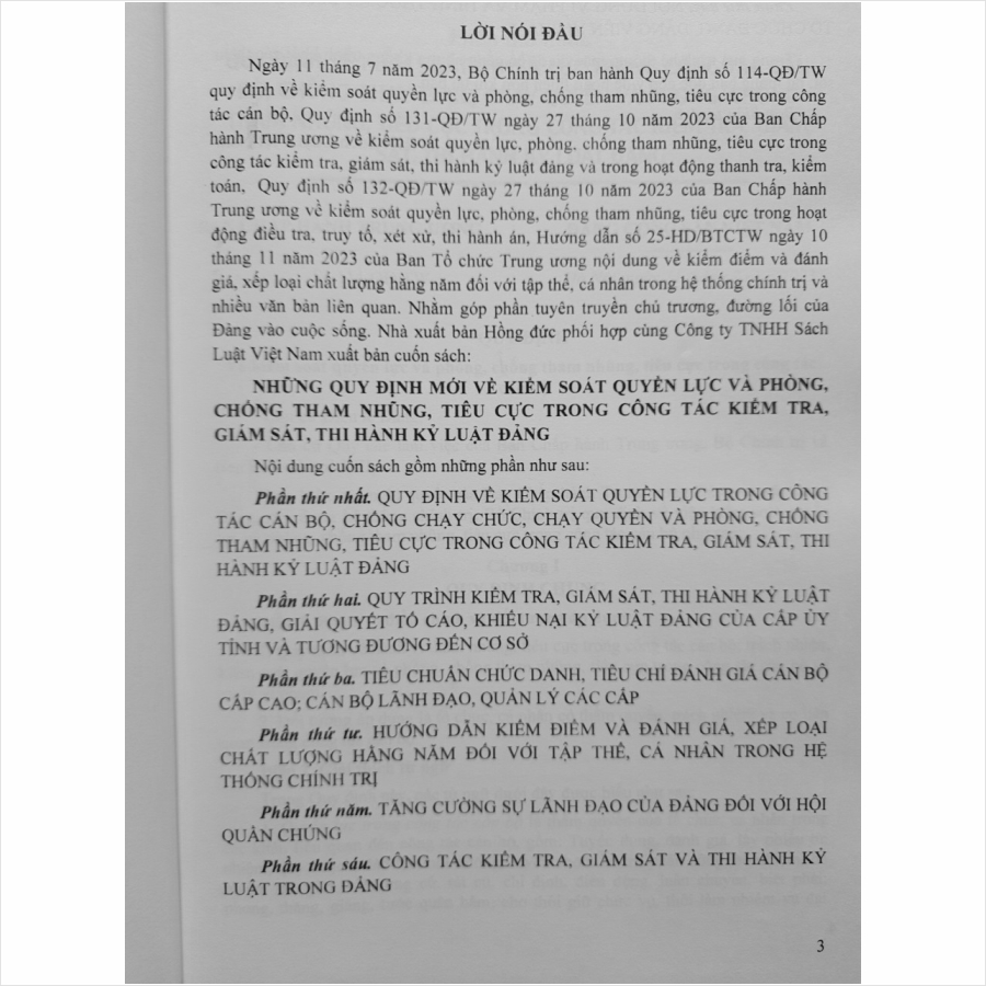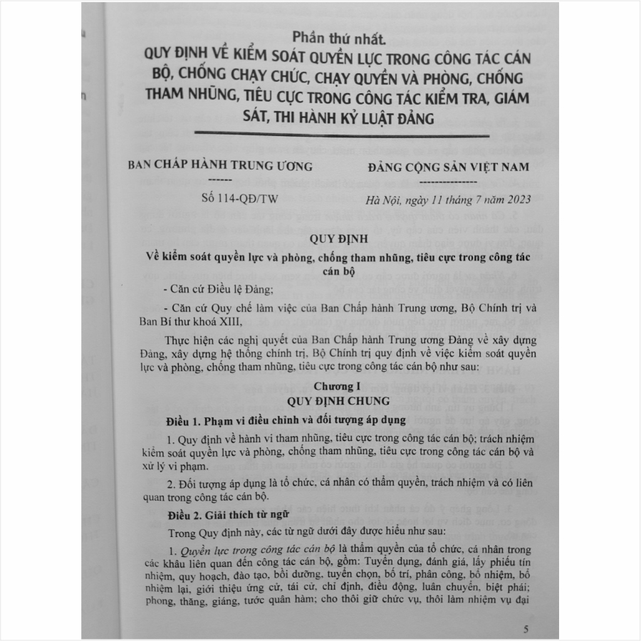 Sách Những Quy Định Mới Về Kiểm Soát Quyền Lực Và Phòng Chống Tham Nhũng, Tiêu Cực trong Công Tác Kiểm Tra, Giám Sát Thi Hành Kỷ Luật Đảng
