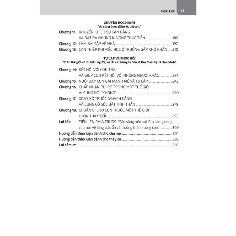 Giới thiệu tác giả Phyllis L. Fagell là một chuyên gia tư vấn tâm lý lâm sàng được cấp phép, một chuyên gia tư vấn giáo dục có chứng chỉ hành nghề và đồng thời cũng là một nhà báo. Phyllis L. Fagell là một chuyên gia đa ngành với kinh nghiệm sâu rộng trong các lĩnh vực tư vấn, giáo dục và báo chí. Bà không chỉ là một nhà tư vấn tâm lý lâm sàng và nhà tư vấn giáo dục được cấp phép mà còn là một cây bút thường xuyên cộng tác với tờ The Washington Post và nhiều ấn phẩm quốc gia khác. Với vai trò là tác giả của cuốn sách "Middle School Matters" (Những Vấn Đề Của Tuổi Trung Học), bà đã chia sẻ những kiến thức chuyên môn về tâm lý lứa tuổi dậy thì. Bên cạnh đó, bà còn trực tiếp làm việc như một nhà tư vấn học đường tại Sheridan School và cung cấp dịch vụ trị liệu cho trẻ em, thanh thiếu niên và gia đình tại The Chrysalis Group Inc. Nhờ kiến thức chuyên môn sâu rộng và kinh nghiệm thực tế phong phú, bà thường xuyên được mời tham gia các buổi nói chuyện và tư vấn về các vấn đề liên quan đến nuôi dạy con cái, tư vấn tâm lý và giáo dục. Giới thiệu sách Bạn lo lắng về giai đoạn chuyển tiếp từ độ tuổi thiếu nhi lên độ tuổi thiếu niên của con mình? Băn khoăn không biết phải định hướng trong thế giới mới này cùng với con như thế nào? Phyllis L. Fagell, một cố vấn chuyên nghiệp kiêm cây bút nổi tiếng của chuyên mục nuôi dạy con, sẽ trả lời cho bạn những câu hỏi này và nhiều hơn thế nữa bởi cô sẽ hướng dẫn bạn cùng con bạn vượt qua giai đoạn thay đổi nhanh chóng vô cùng quan trọng này. Đây là cuốn cẩm nang thiết yếu giải đáp những câu hỏi và vấn đề phổ biến nhất của lứa tuổi trung học cơ sở, cung cấp cho bạn đọc những công cụ cần thiết để hỗ trợ con phát triển trong những năm tháng này. Tại sao cuốn sách này lại quan trọng? Hiểu rõ tâm lý tuổi teen: Cuốn sách giúp cha mẹ hiểu rõ hơn về những suy nghĩ, cảm xúc và hành vi của con cái mình trong giai đoạn dậy thì. Từ đó, cha mẹ có thể kiên nhẫn đồng hành và hỗ trợ con một cách hiệu quả. Xử lý các vấn đề thường gặp: Cuốn sách đề cập đến nhiều vấn đề phổ biến mà các bạn trẻ tuổi trung học thường đối mặt, như áp lực học tập, các mối quan hệ xã hội, sự thay đổi về thể chất và tâm lý, v.v. Cung cấp các kỹ năng giao tiếp hiệu quả: Cuốn sách giúp cha mẹ học cách giao tiếp với con cái một cách cởi mở và chân thành, tạo dựng một mối quan hệ tin cậy và thân thiết. Hướng dẫn các phương pháp nuôi dạy phù hợp: Tác giả chia sẻ những kinh nghiệm thực tế và những phương pháp nuôi dạy hiệu quả, giúp cha mẹ định hướng cho con cái phát triển toàn diện. Những vấn đề được đề cập trong sách Áp lực học tập: Làm thế nào để giúp con cân bằng giữa học tập và các hoạt động ngoại khóa? Các mối quan hệ xã hội: Làm thế nào để giúp con xây dựng các mối quan hệ lành mạnh và đối phó với tình huống bị bắt nạt? Thay đổi về thể chất và tâm lý: Làm thế nào để giúp con tự tin vào bản thân và đối mặt với những thay đổi trong cơ thể? Sử dụng mạng xã hội: Làm thế nào để giúp con sử dụng mạng xã hội một cách an toàn và lành mạnh? Vấn đề giới tính và tình dục: Làm thế nào để trò chuyện với con về những vấn đề nhạy cảm này? Đối tượng đọc Cuốn sách này phù hợp với tất cả các bậc phụ huynh có con ở độ tuổi trung học, đặc biệt là những người đang gặp khó khăn trong việc nuôi dạy con cái. Lợi ích khi đọc sách Giảm bớt căng thẳng và lo lắng: Hiểu rõ hơn về con cái và tìm được những giải pháp phù hợp giúp cha mẹ giảm bớt căng thẳng và lo lắng. Cải thiện mối quan hệ gia đình: Tạo ra một môi trường gia đình ấm áp, nơi mà con cái cảm thấy được yêu thương và an toàn. Hỗ trợ con cái phát triển toàn diện: Giúp con cái phát triển các kỹ năng sống cần thiết để thành công trong cuộc sống. Mục lục Trích đoạn
