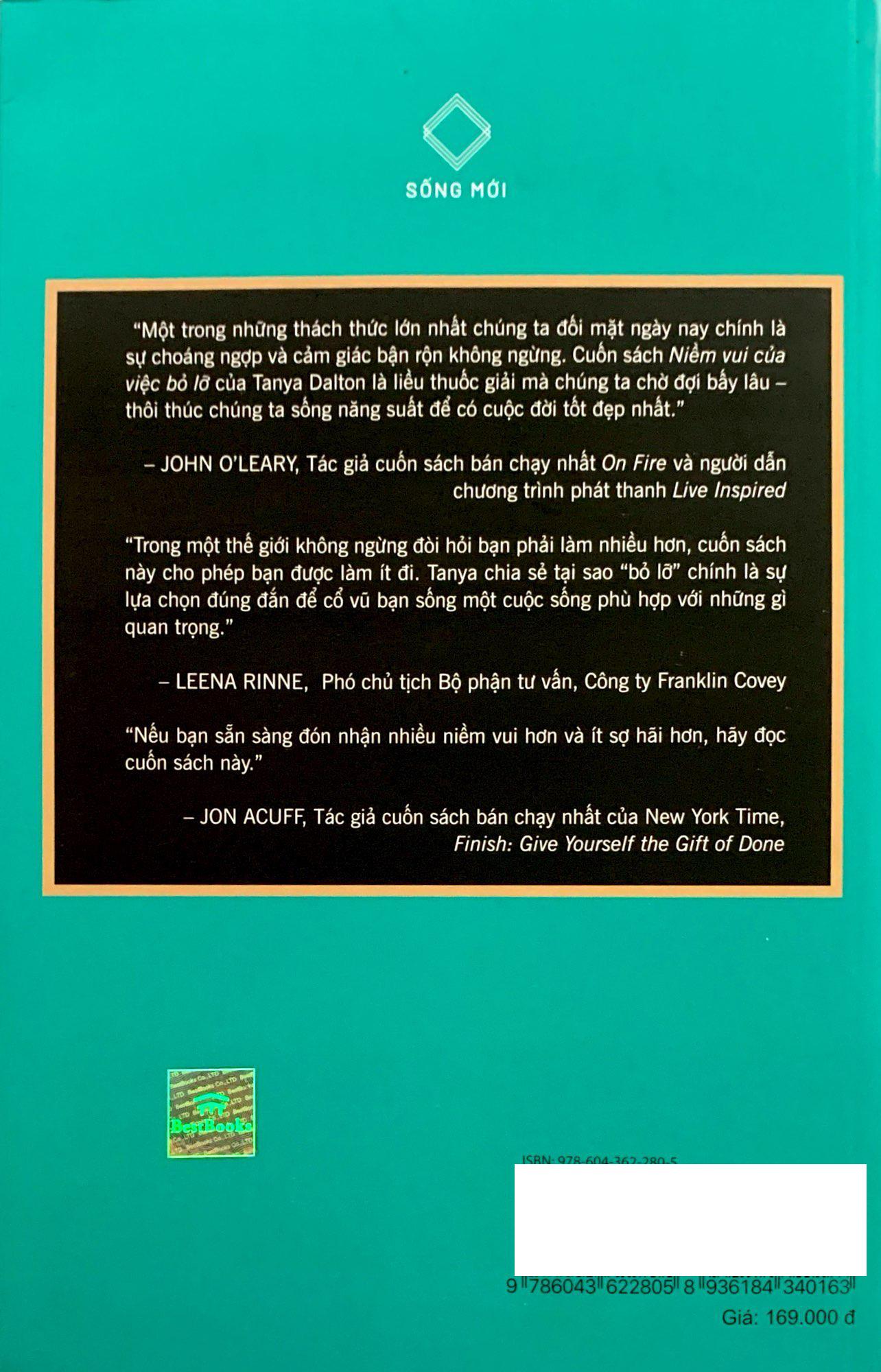 Những cuốn sách về hạnh phúc, về cân bằng cuộc sống hay tối giản tâm trí – của cải đã không còn xa lạ với chúng ta. Nhưng NIỀM VUI CỦA VIỆC BỎ LỠ mang đến cho chúng ta một góc nhìn hoàn toàn mới: đánh giá lại cuộc sống trong mỗi ngày của mình để hiểu được chúng ta đã và đang hối tiếc điều gì, đâu mới là năng suất thực sự của bản thân.