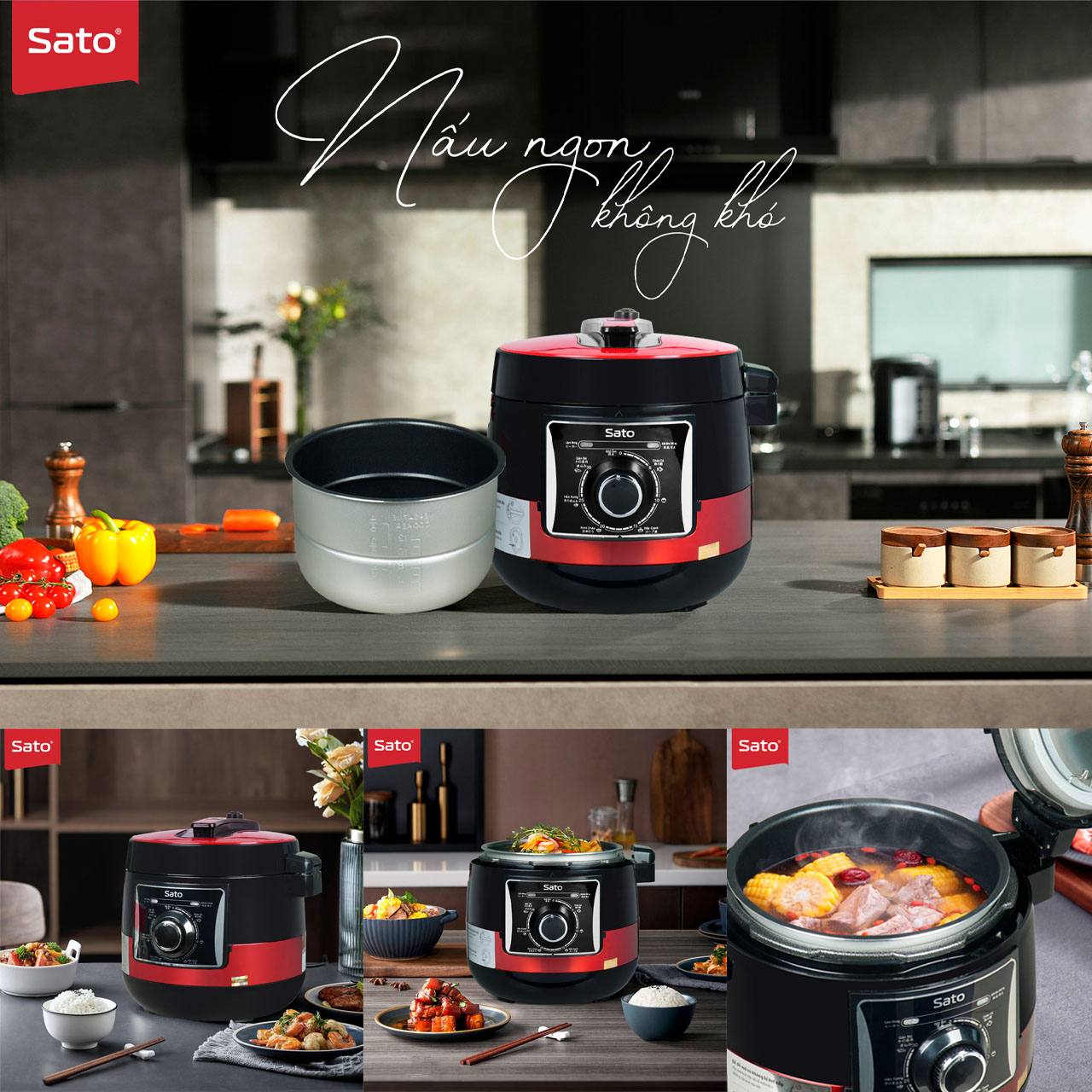 ✨Nồi áp suất đa năng SATO 5AS064.D 5.0L - Nồi áp suất đa chức năng : nấu cơm, nấu cháo, hầm gân, ninh, súp, hấp, giữ ấm ... Dung tích : 5.0 lít phù hợp gia đình 4 - 6 người - Miễn phí vận chuyển toàn quốc - Hàng chính hãng
