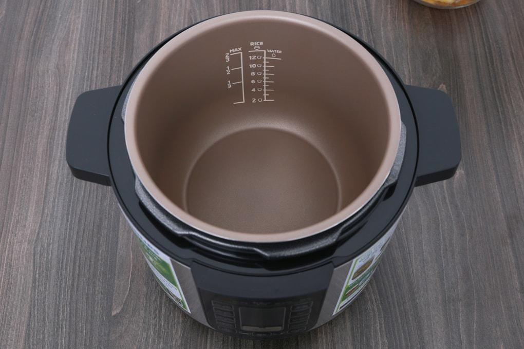 Lồng nồi bền, chống dính Lồng nồi hợp kim nhôm bền giúp dẫn nhiệt nhiệt hiệu quả hơn. Lớp phủ Whitford màu vàng đặc biệt giúp chống xước và chống dính. Thiết kế nắp trong
