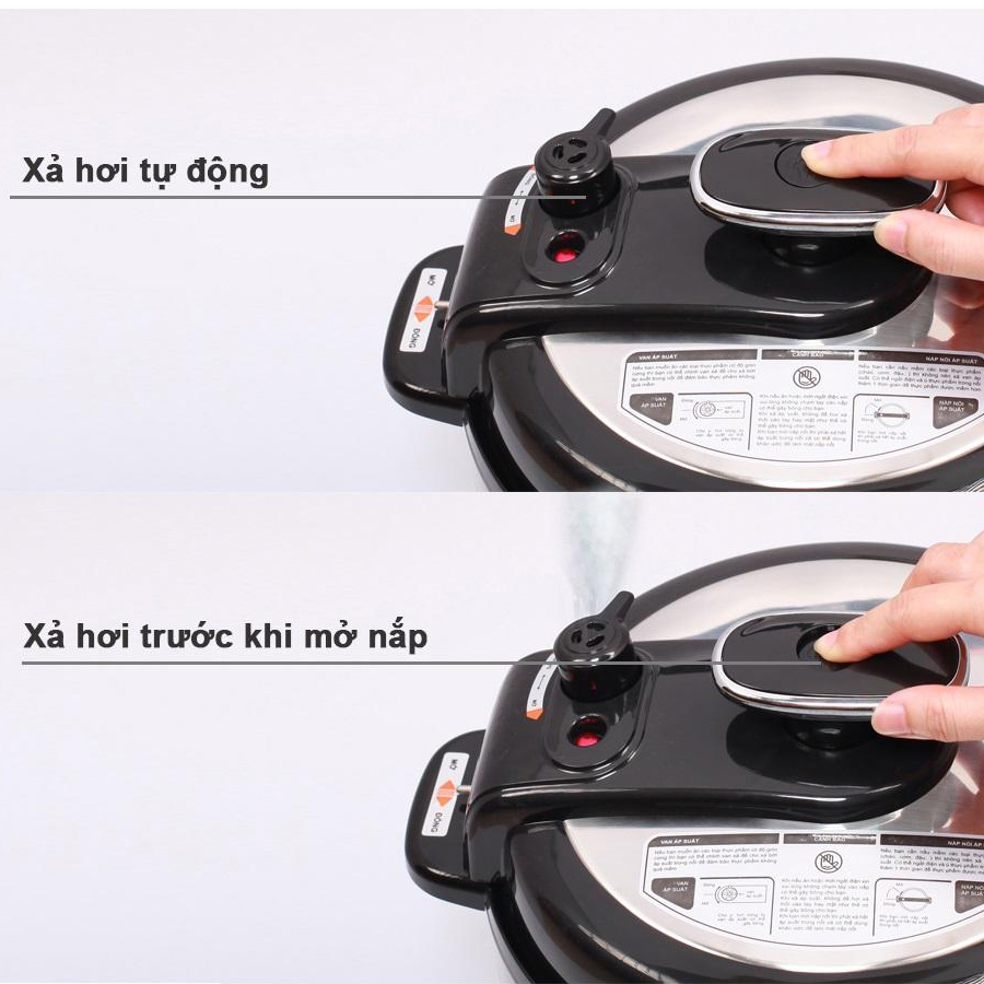 - Nồi Áp Suất Đa Năng có khóa bảo vệ đóng mở - Nồi được điều khiển áp suất tự động, nắp mở tiện lợi. Nồi có lớp lót chống dính và có van xả