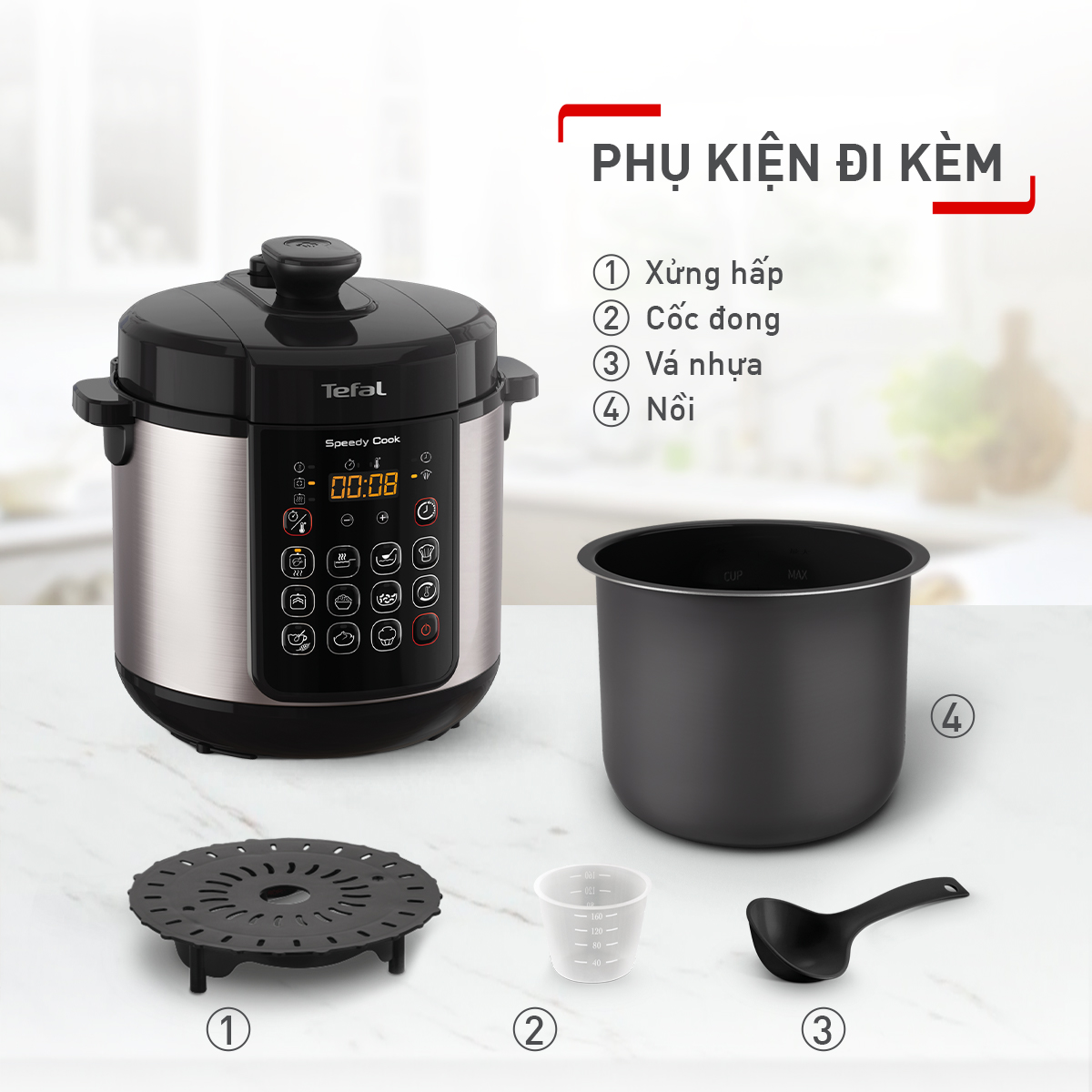 Nồi áp suất điện Tefal Speedy Cook CY222D68 5 lít khui thùng và hướng dẫn sử dụng