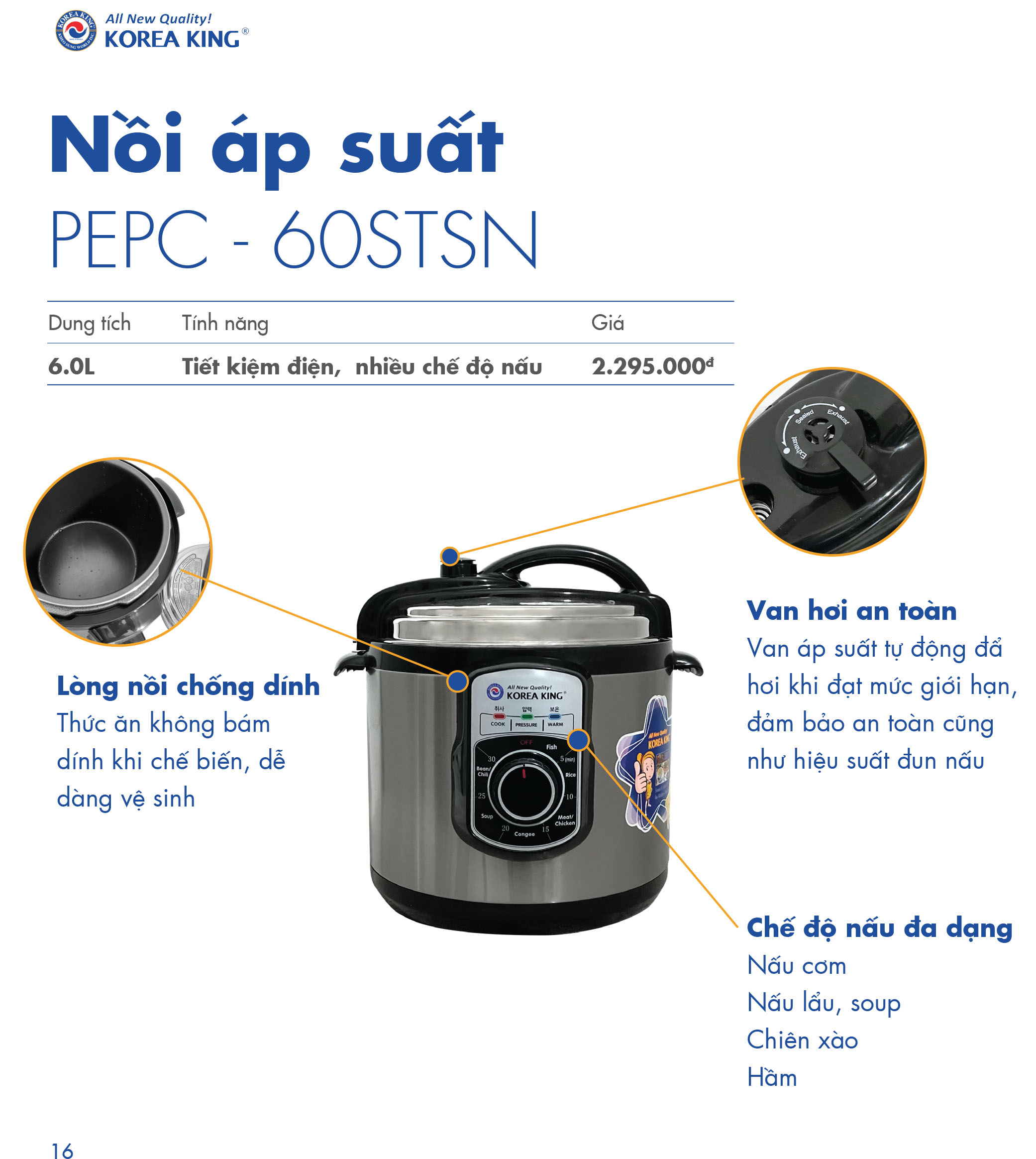 Nồi Áp Suất Điện Korea King PEPC-60STSN