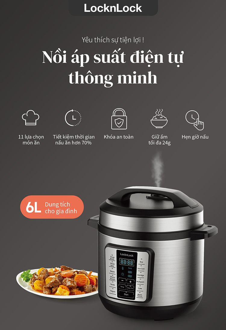 ✨Nồi áp suất điện tử Lock&Lock EJP666SLV 6 Lít - Hàng chính hãng