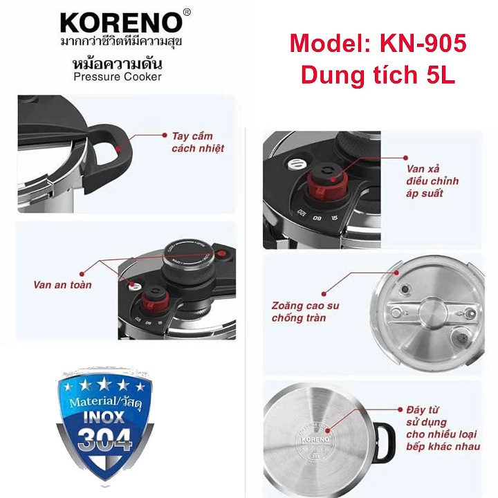 RẺ THẬT Nồi áp suất inox 304 Koreno Thái Lan dung tích 5 Lít dùng bếp từ #sanhangre zalo 0986588655