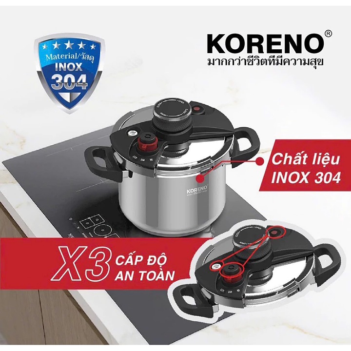 ✨Nồi áp suất Inox 5L Koreno nấu bếp từ bếp ga thiết kế 3 van an toàn bảo hành 12 tháng