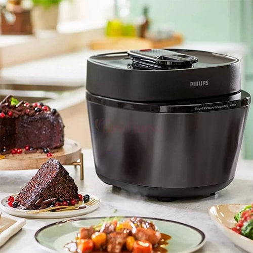 Nồi áp suất HD2151/66 có dung tích tổng 5 lít thoải mái nấu nhiều thực phẩm cùng lúc, có thể để vừa gà nguyên con khoảng 1.2 kg. Công suất 910 - 1090W cùng công nghệ xả áp suất nhanh cho khả năng xả áp suất tự động chỉ trong 7 phút giúp thức ăn chín nhanh hơn 50% so với trên bếp, tiết kiệm thời gian nấu nướng. Bên cạnh đó, áp suất sẽ được tự động xả ra sau khi nấu xong vì vậy không cần xả áp suất bằng tay hoặc đợi áp suất giảm tự nhiên khi nồi nguội.