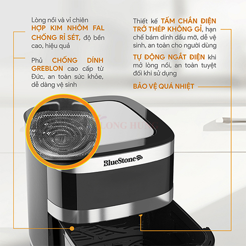 NỒI CHIÊN KHÔNG DẦU BLUESTONE AFB-5853 7 LÍT 1500W - Công suất: 1500 W - Dung tích: 7 L. - Loại nồi: - Bảng điều khiển cơ núm vặn - Nồi chiên không dầu đa