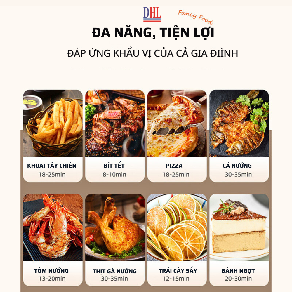 - Với công suất 1700w nhiệt được phân bố tối ưu với luồn khí nóng đối lưu nên thức ăn ko cần lật. Bề mặt vỏ inox sang trọng, tay cầm được chống nóng, thành