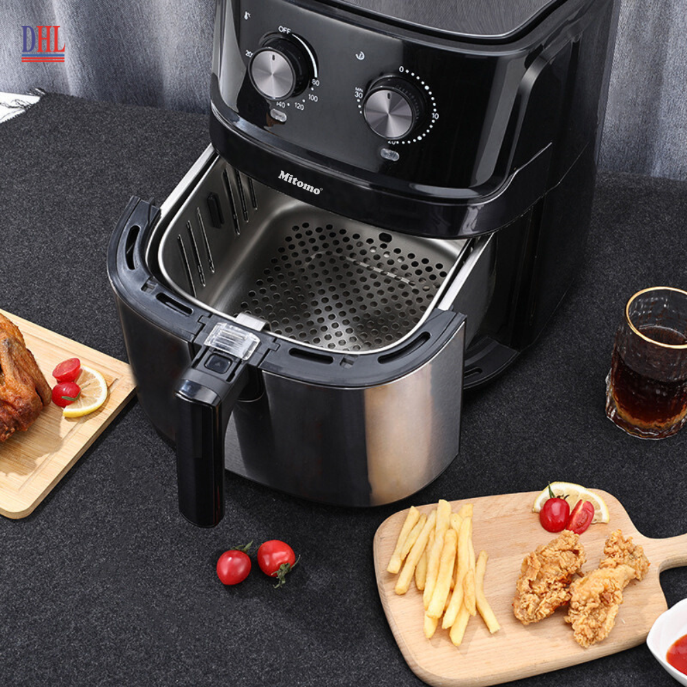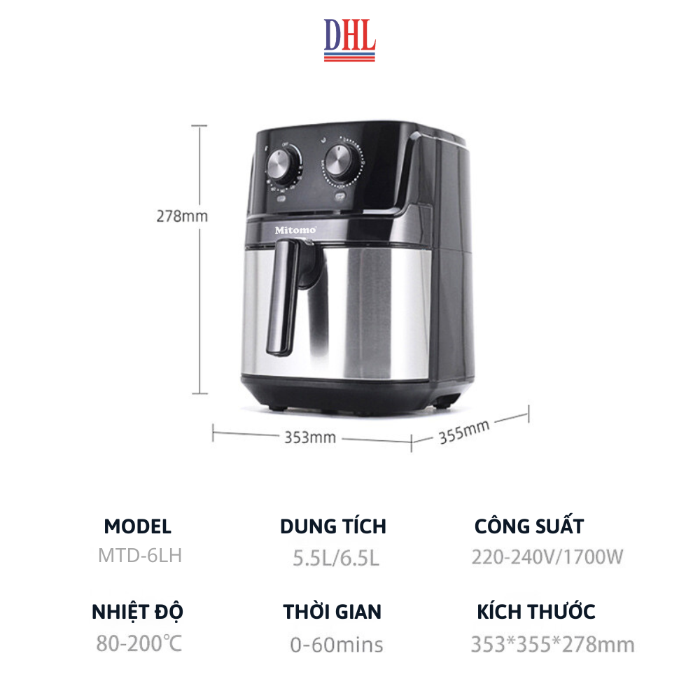 Mua tại Tiktok Nồi chiên không dầu Mitomo MTD-6LH được thiết kế với kiểu dáng hiện đại, thân máy được làm từ vật liệu cao cấp, dễ dàng vệ sinh và an toàn tuyệt đôi cho sức