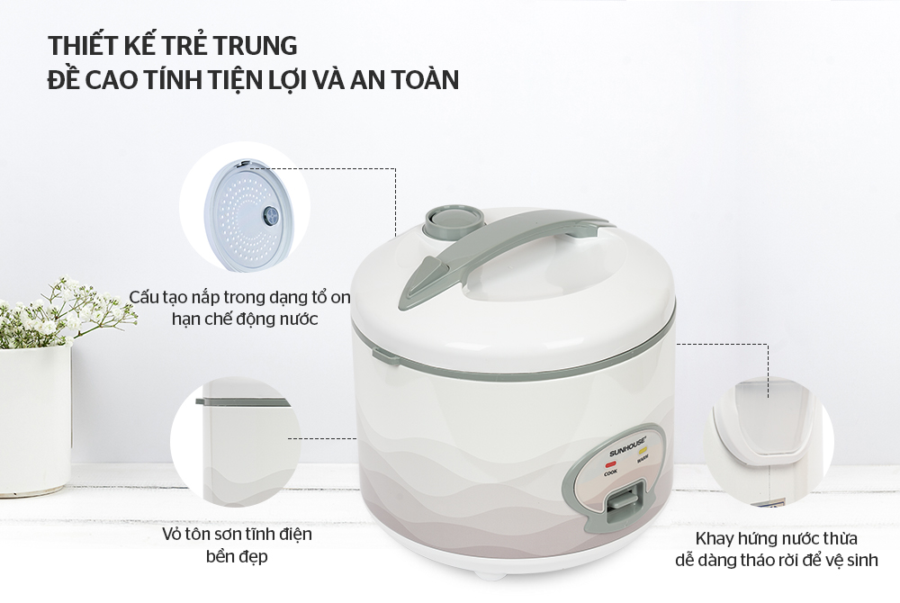 Cấu tạo 3 lớp siêu bền Nồi Cơm Điện Đa Năng Sunhouse SHD8602 (1.8L) là loại nồi cơm nắp liền thân của thương hiệu Sunhouse – xuất xứ từ Hàn Quốc. Sản phẩm có cấu