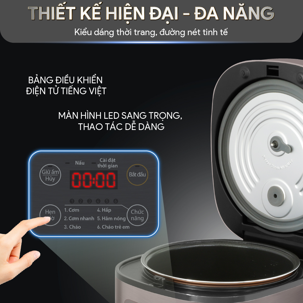 Chức năng nấu: 6 chế độ (Cơm, Cơm nhanh, cháo, hấp, hâm nóng, cháo trẻ em)