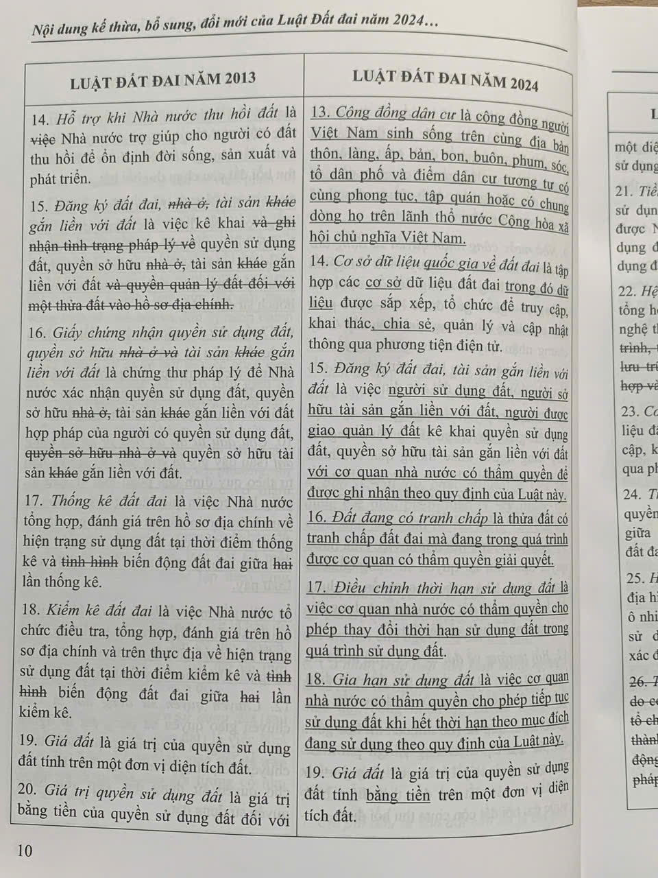 Để thuận tiện trong quá trình theo dõi, nghiên cứu, triển khai thi hành Luật, cuốn sách “Nội dung kế thừa, bổ sung, đổi mới của Luật Đất đai năm 2024 so với Luật Đất đai năm 2013” được trình bày như sau: