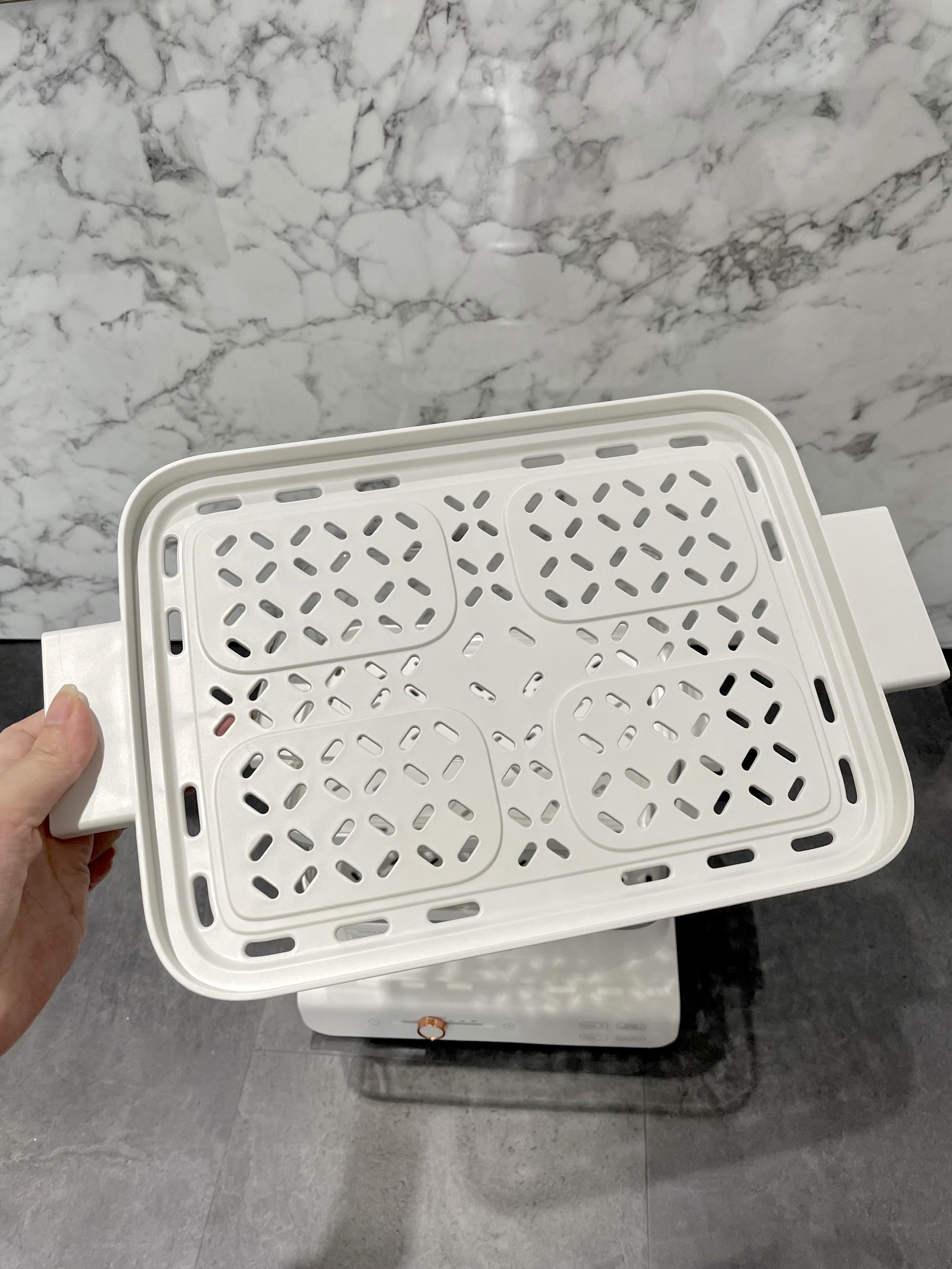 Thông tin sản phẩm Khay hấp dạng vuông hai tầng - dung tích 6L: hấp được nhiều thức ăn hơn Hẹn giờ 60 phút: không phải bận tâm canh thời gian hấp Tỏa nhiệt dạng vòng: món ăn