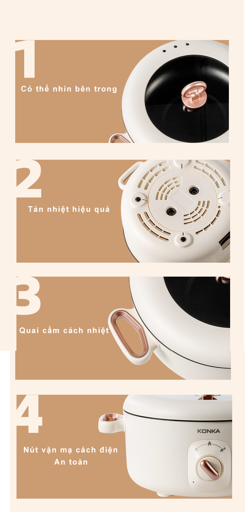 Nồi điện KONKA KZG-T3HP30 chính hãng an toàn chống dính đa chức năng