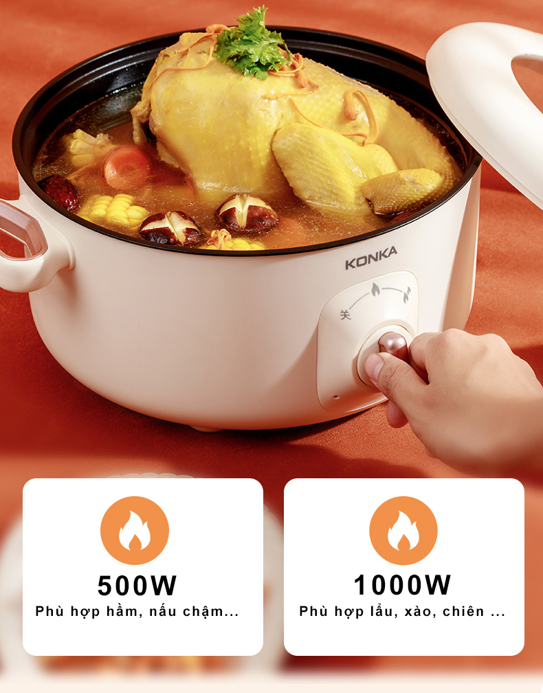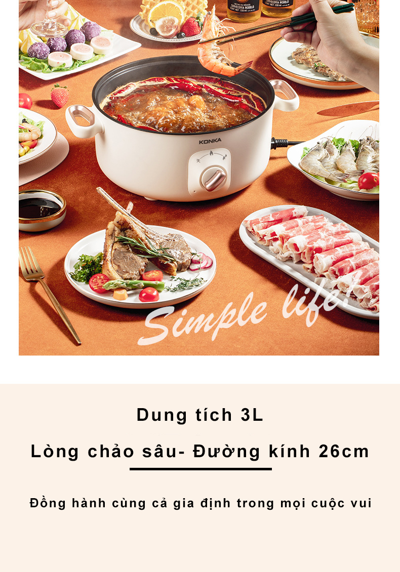 ✨Nồi Lẩu Điện Đa Năng Chống Dính 3 Lít 1000W KONKA KZG-HP03 - HÀNG CHÍNH HÃNG